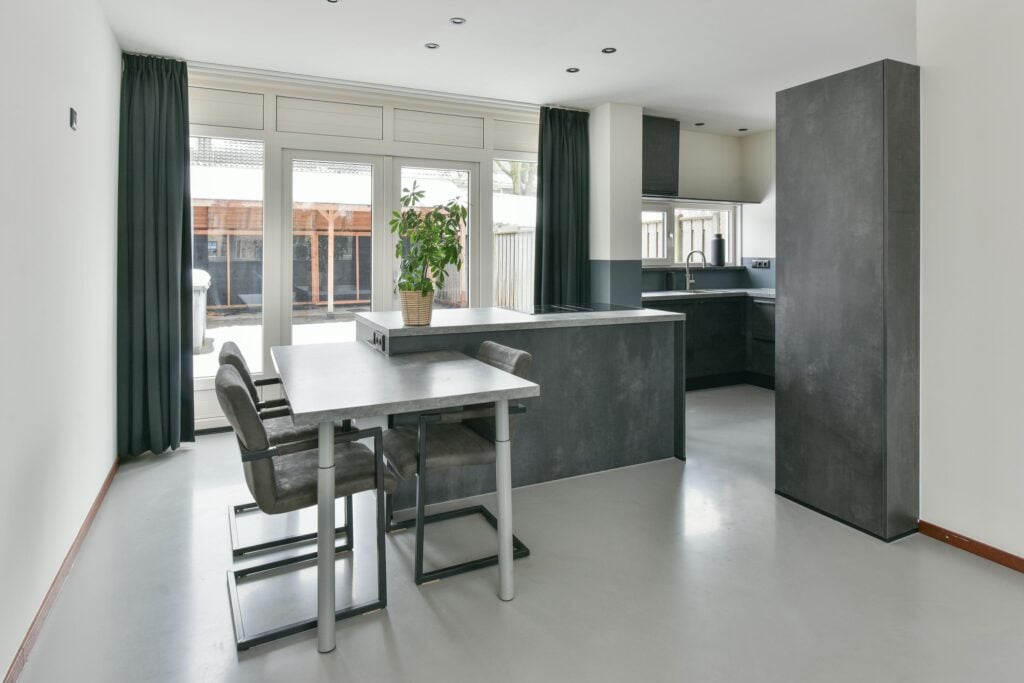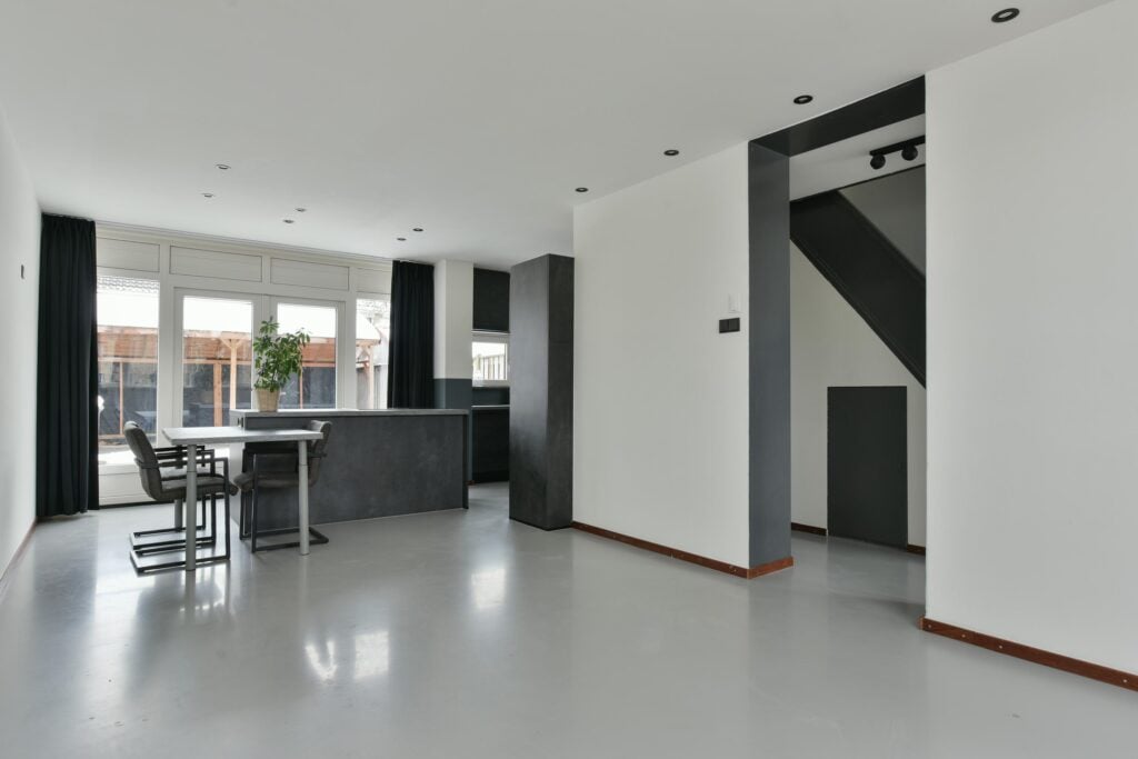 Via de entree bereikt u een ruime en verzorgde hal met een grote garderobekast, de meterkast, een trapopgang naar de eerste verdieping, een praktische trapkast en een luxe, volledig gerenoveerde toiletruimte. Vanuit de hal heeft u toegang tot de doorzonwoonkamer met luxe open keuken. Deze verdieping is afgewerkt met een hoogwaardige gietvloer en staat in directe verbinding met de achtertuin via openslaande deuren. De open keuken is uitgevoerd in een moderne opstelling en voorzien van een kookeiland met diverse inbouwapparatuur waaronder een Quooker, oven, combimagnetron, vaatwasser en een grote koelkast en grote vriezer. In de keuken is tevens een geïntegreerde eettafel opgenomen, welke desgewenst eenvoudig kan worden gedemonteerd. De vloer is geheel voorzien van vloerverwarming.