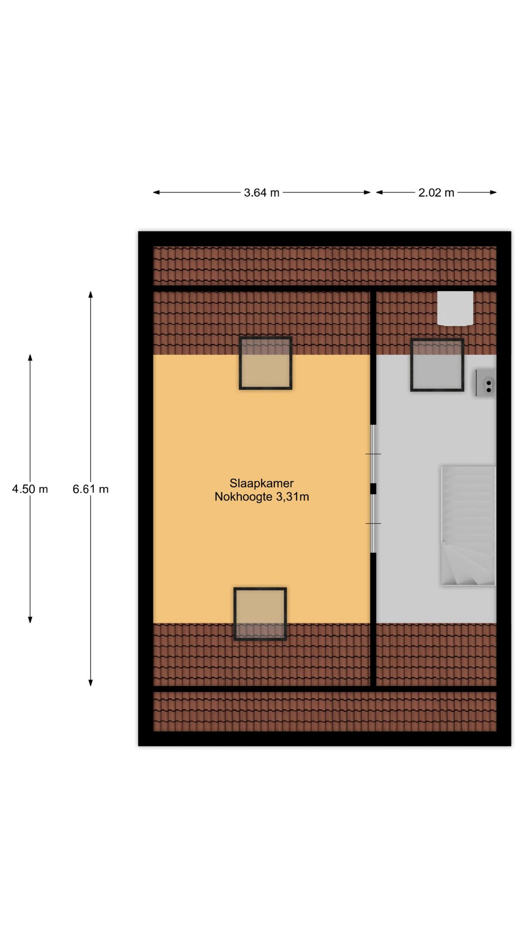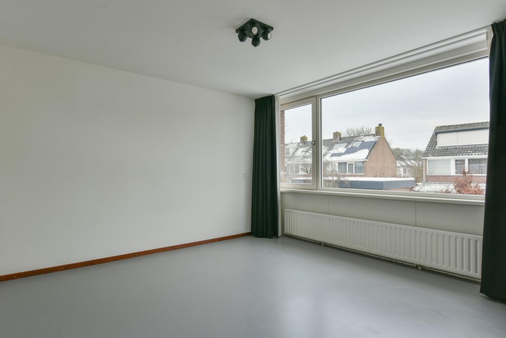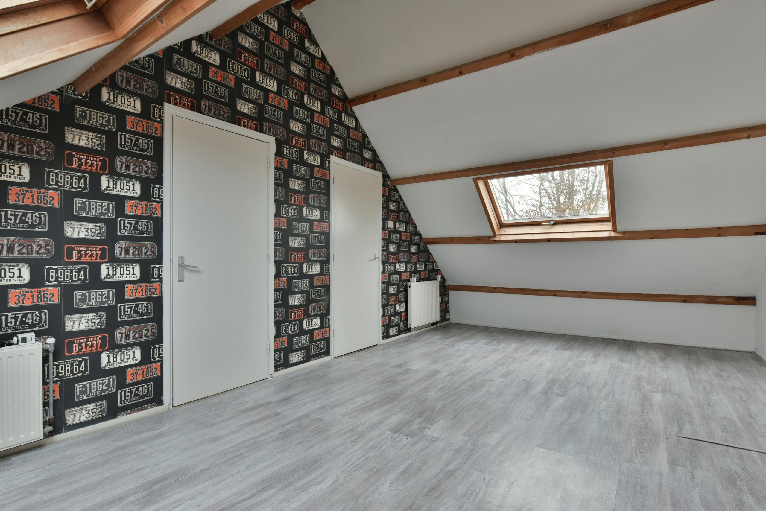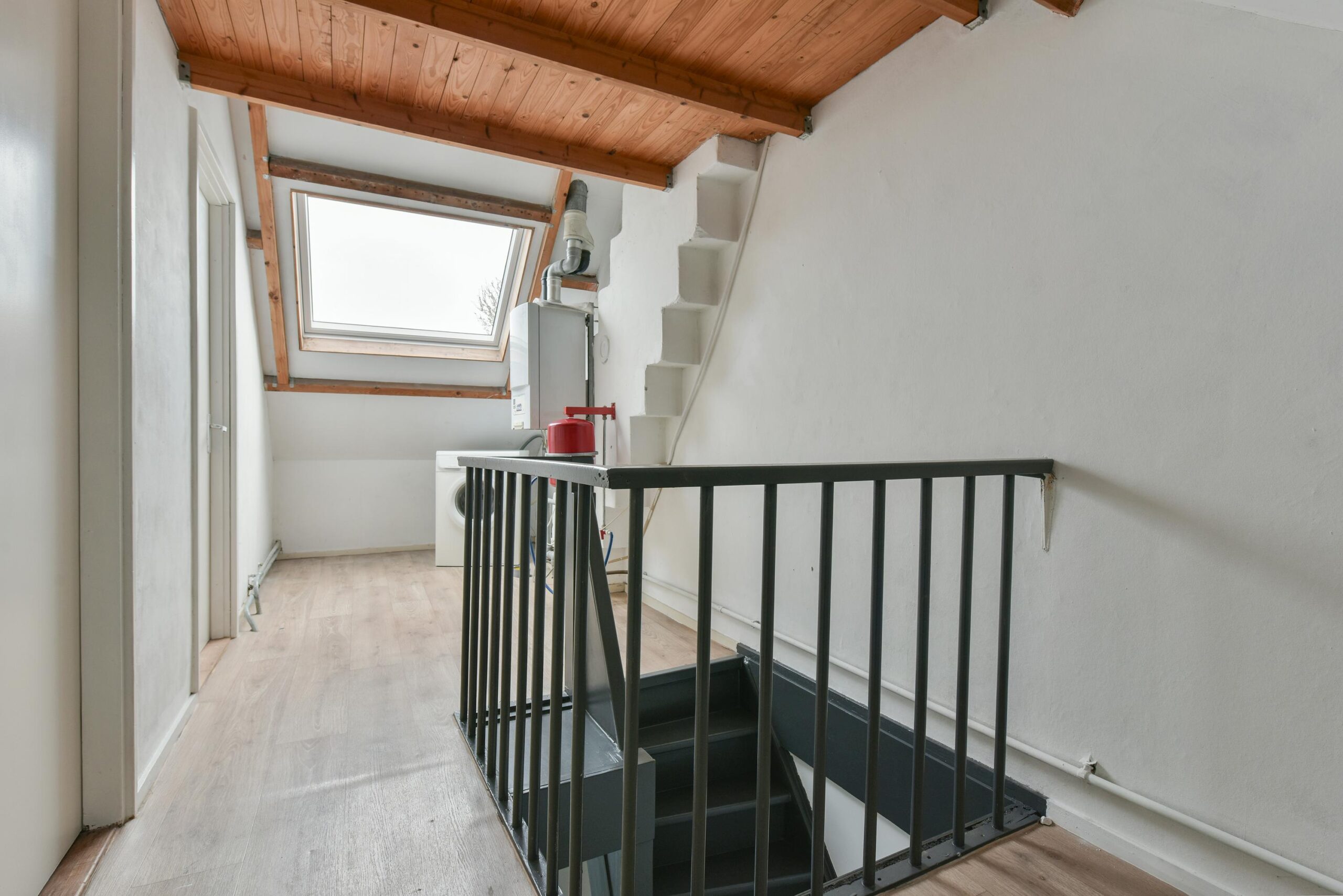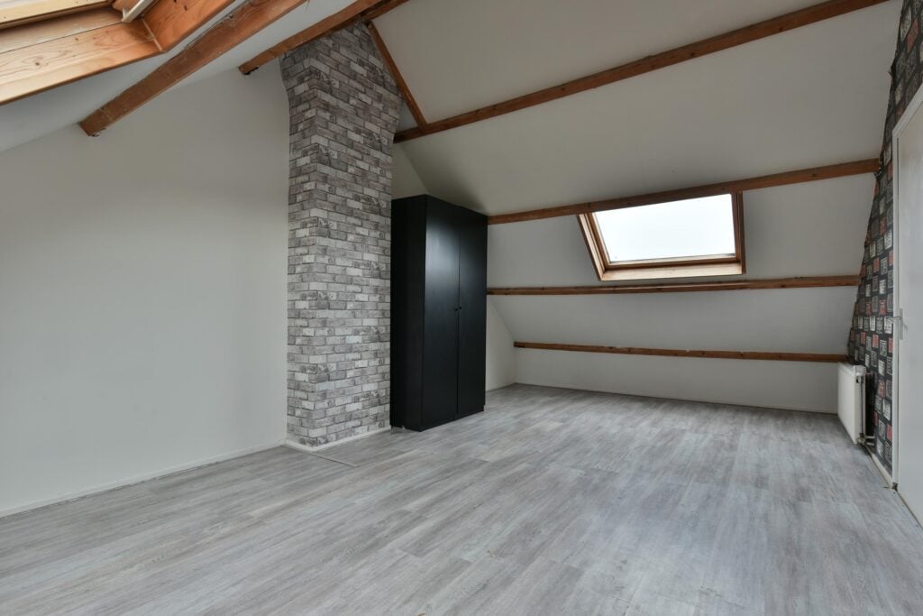 De tweede verdieping beschikt over een grote overloop met aan de achterzijde de opstelling van de cv-ketel, aansluitingen voor wasmachine en droger en een Velux dakraam. Vanaf de overloop is er toegang tot een zeer ruime slaapkamer met een fraaie hoge nok van circa 3,30 meter en twee Velux dakramen. Doordat deze kamer via twee deuren bereikbaar is, bestaat er een eenvoudige mogelijkheid om hier twee goede slaapkamers van te maken.