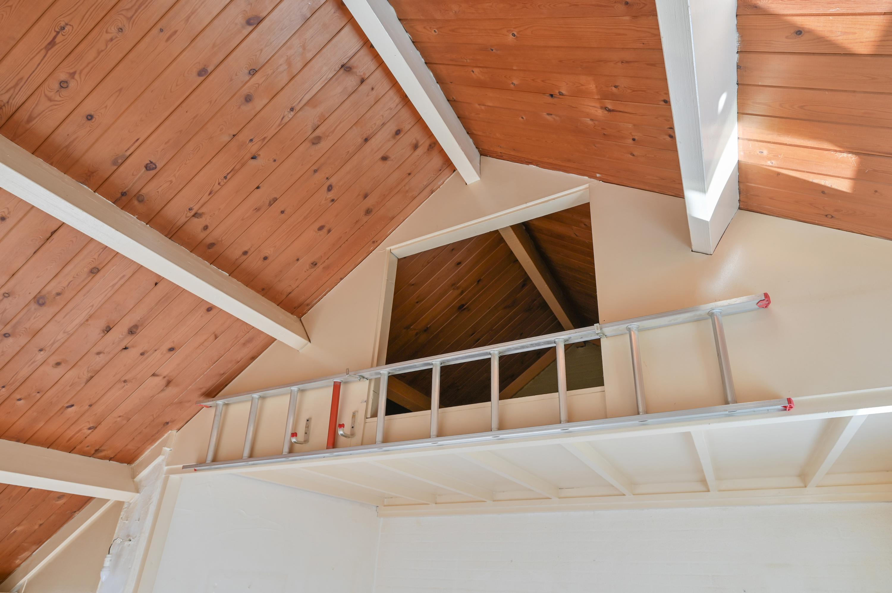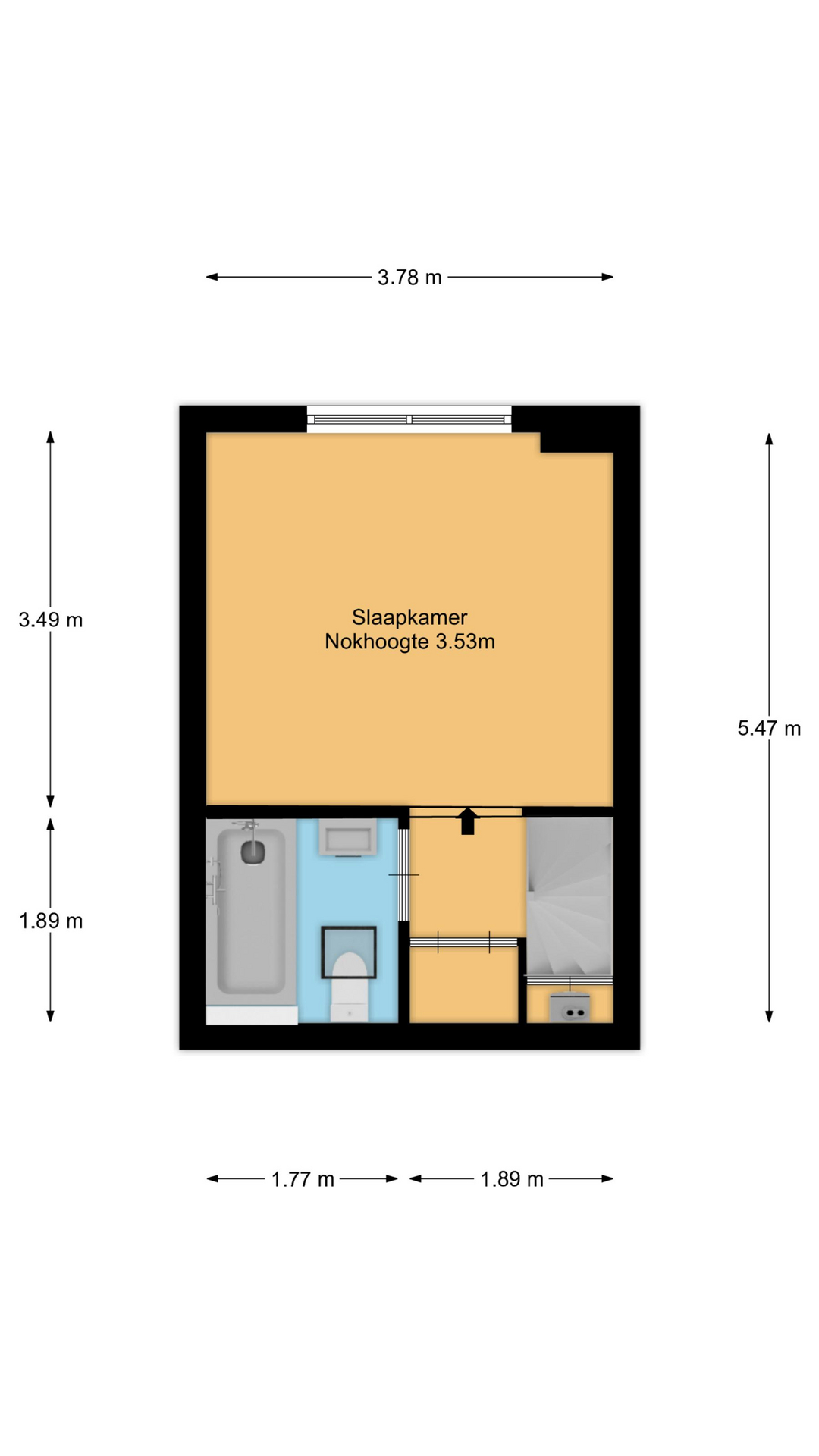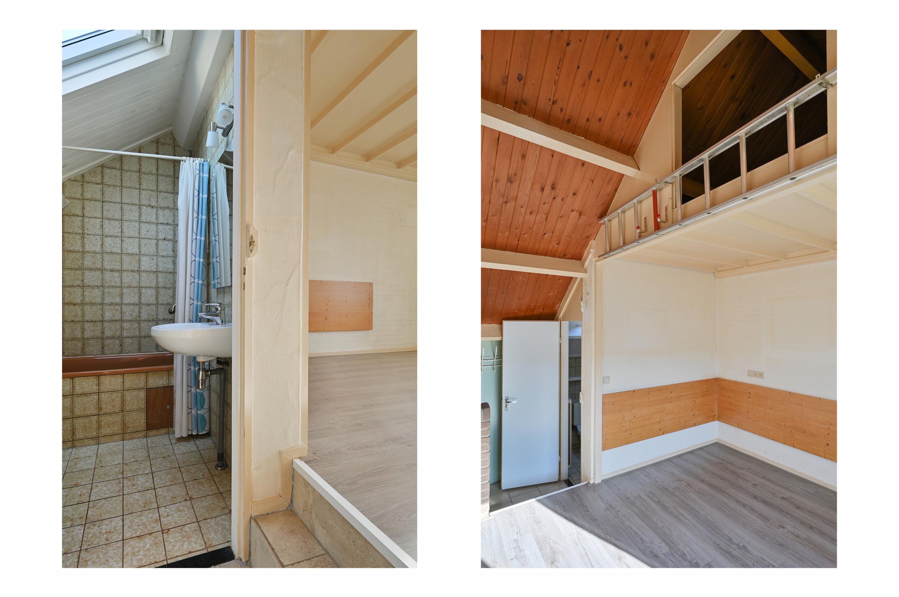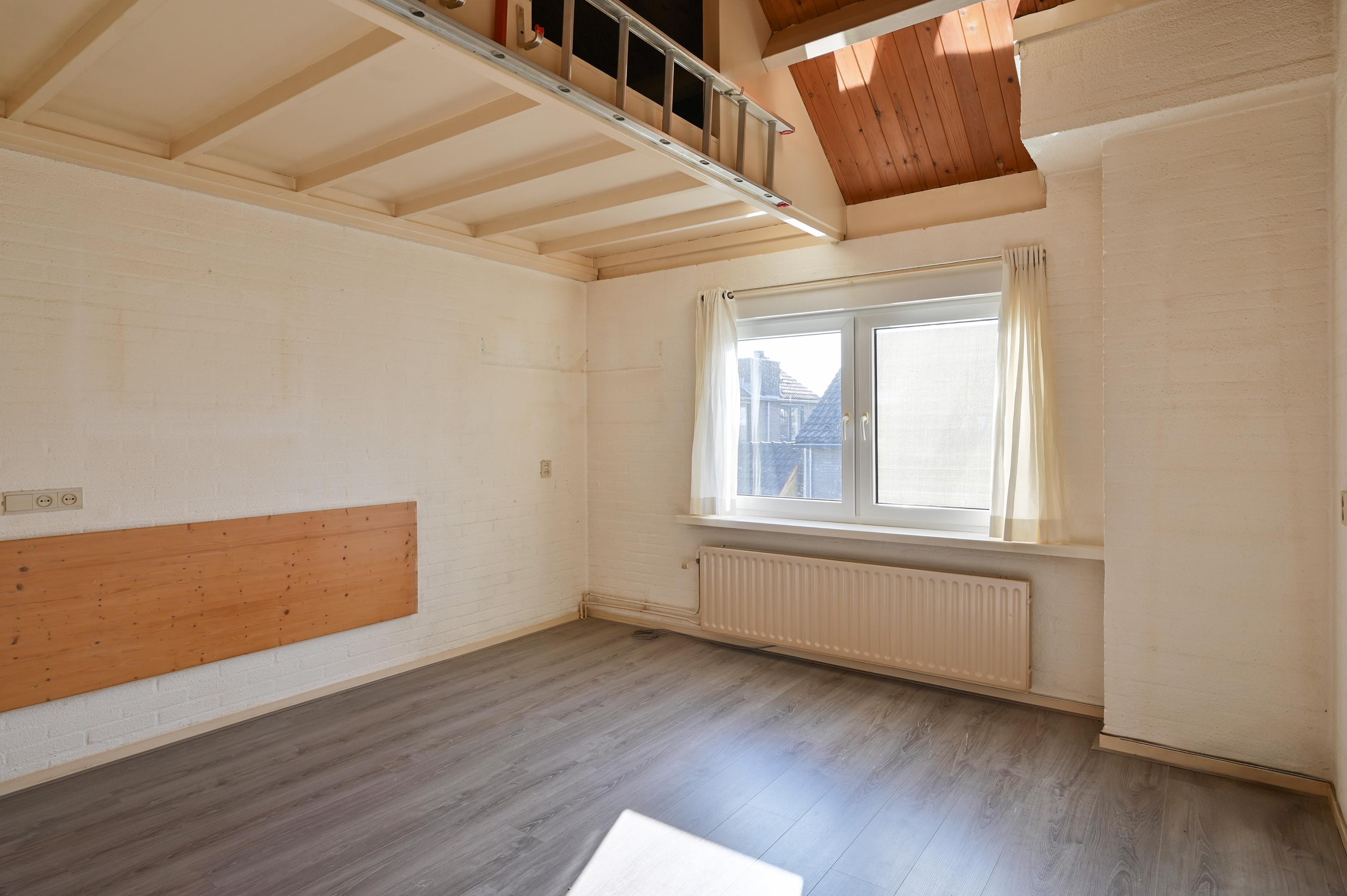 Via een kleine opstap kom je in de ruime slaapkamer met een mooie hoge nok in een schuin dak. Er is een vliering bereikbaar via een losse trap. De vliering kan eventueel ook als slaapruimte dienen voor bijvoorbeeld een logé of kinderen. Het kozijn is van kunststof (2004) en heeft HR++ glas.