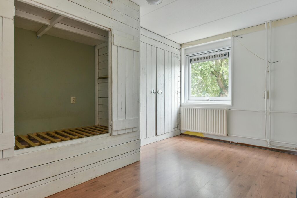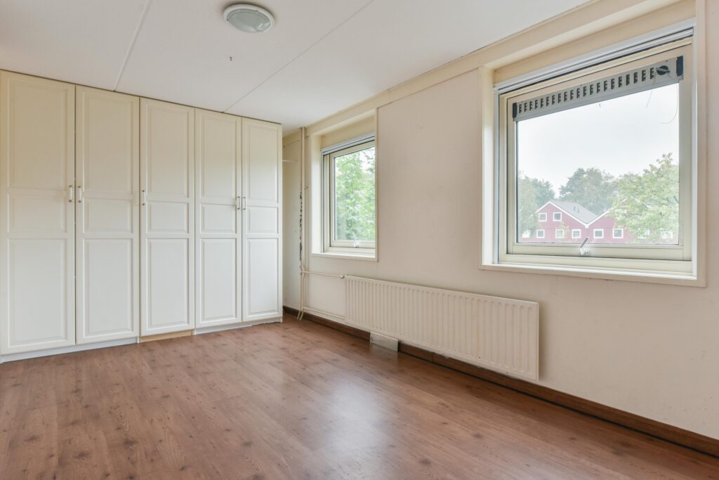 Ruime overloop met vaste kast en toegang tot de drie in grootte variërende slaapkamers en de badkamer. De grote slaapkamer aan de achterzijde heeft een bedstee met onderschuifbed. De inpandige ruime badkamer is voorzien van een tweede toilet, wastafelmeubel, inloopdouche met regen- en handdouchegarnituur en elektrisch vloerverwarming.