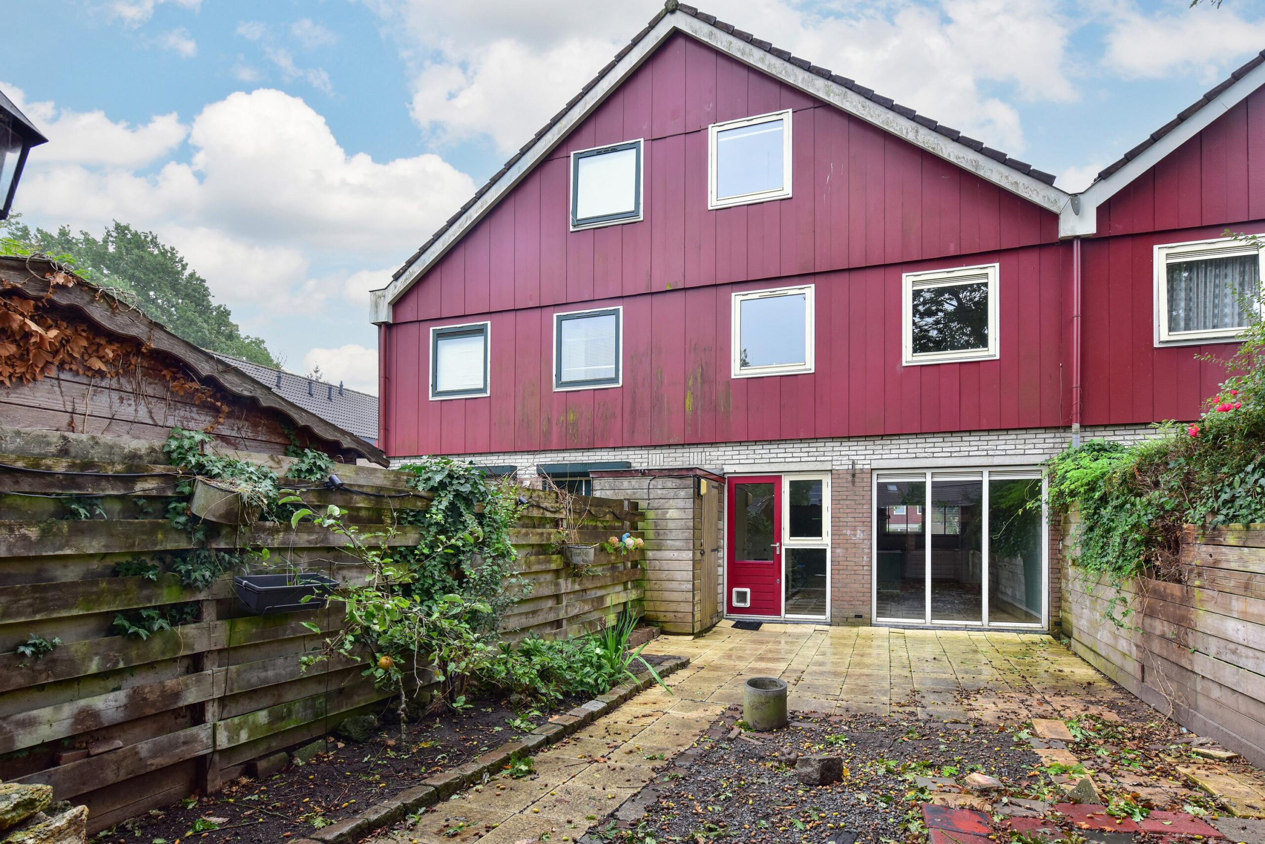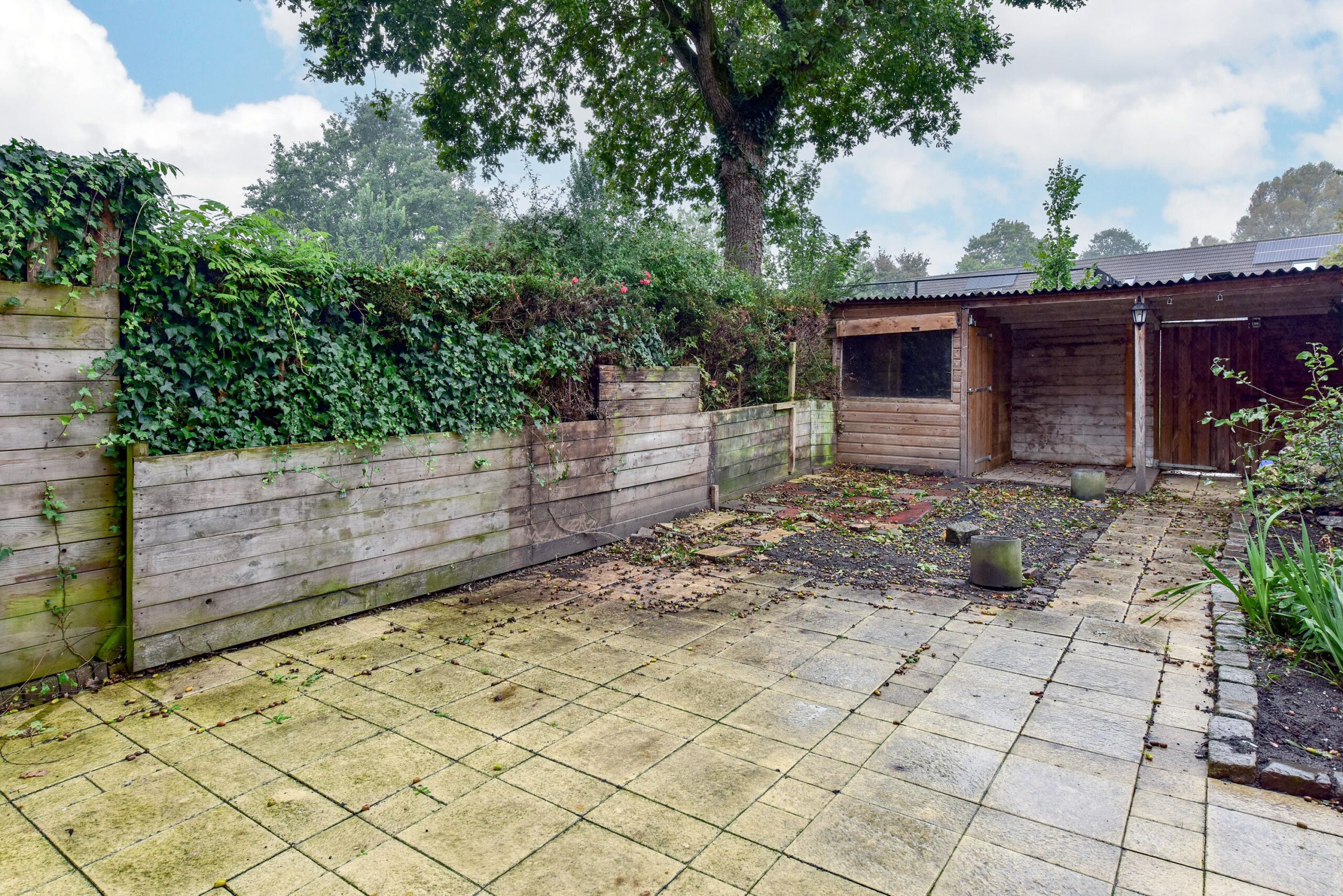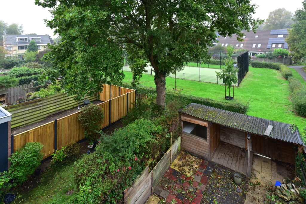 De ruime achtertuin is gunstig gelegen op het noordwesten dus tot ’s avonds laat kunt u genieten van de zon. De tuin grenst aan de achterzijde aan gemeentegrond en heeft een achterom (niet officieel). Er is een houten tuinkast tegen de achtergevel en een overkapping achterin de tuin.