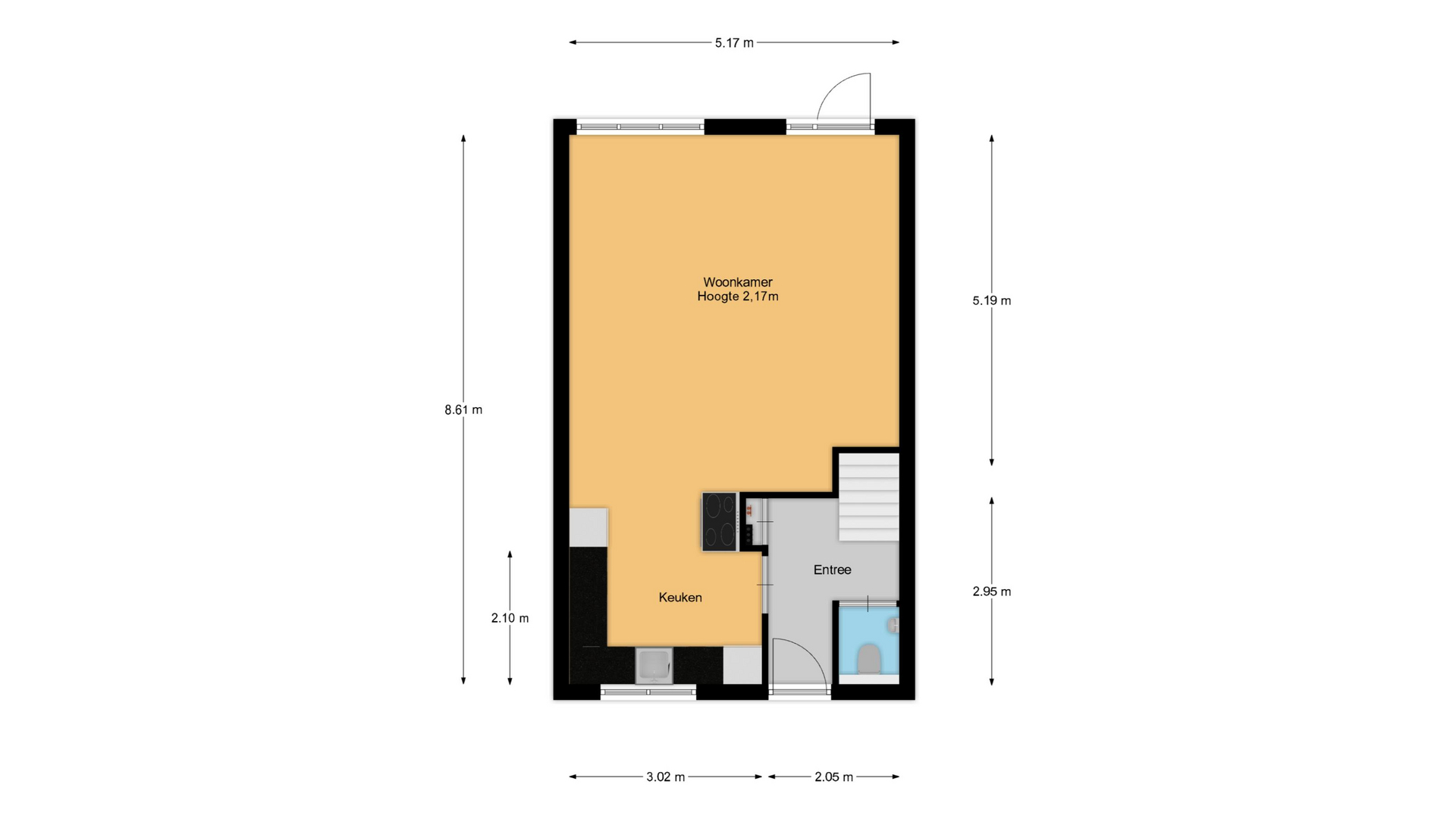 Entree; ruime hal met garderoberuimte en meterkast met uitgebreide groepenkast met glasvezelaansluiting, toilet met fonteintje, trapopgang naar eerste verdieping en toegang tot de woonkamer en open keuken.