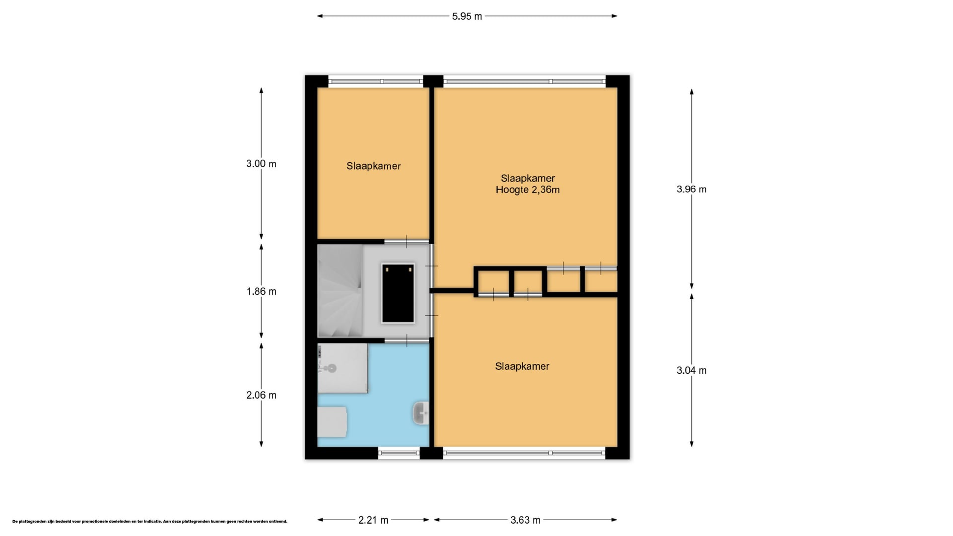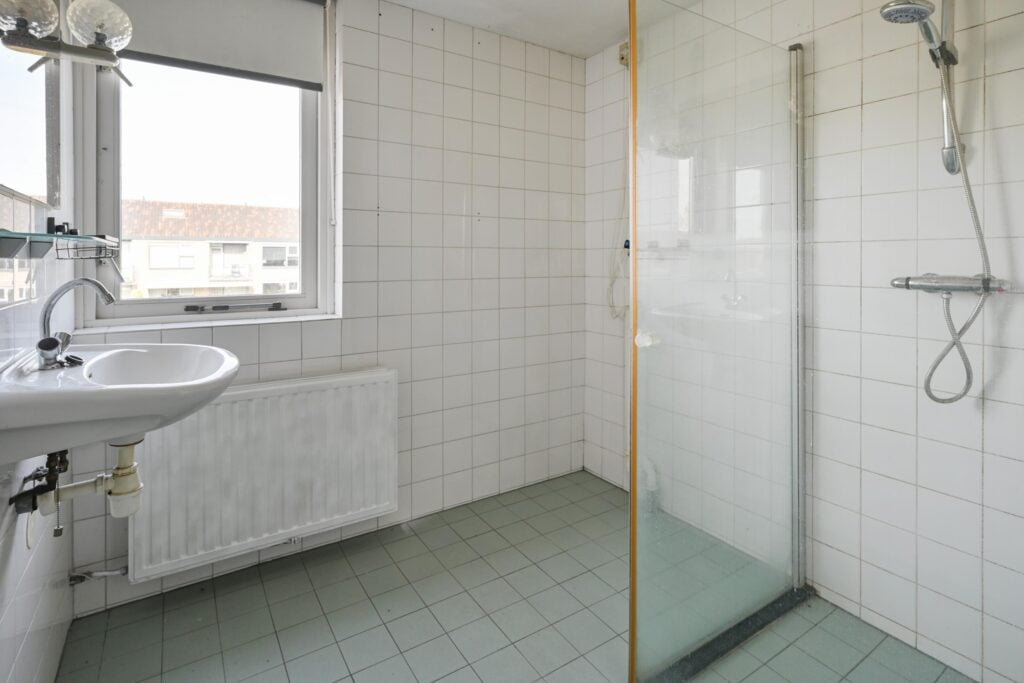 Overloop met toegang tot drie slaapkamers van verschillende afmetingen, waarvan twee kamers beschikken over praktische vaste kasten. De badkamer is ingericht met een inloopdouche, wastafel, wasmachineaansluiting en ventilatie.