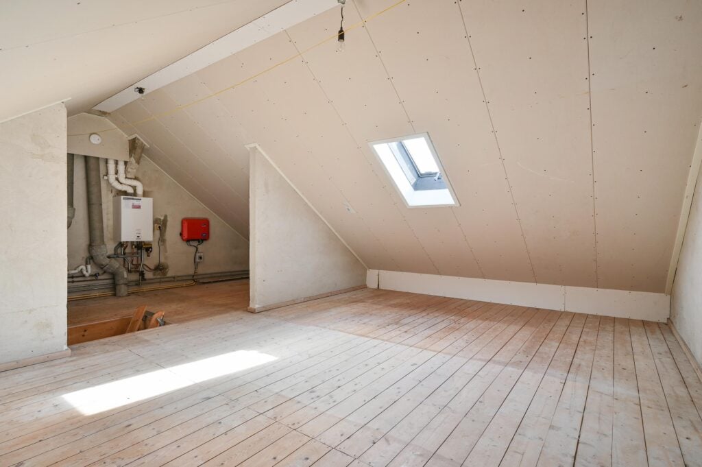 Via een vlizotrap bereik je de ruime bergvliering. Dankzij de geïsoleerde kap en een nokhoogte van circa 2,37 meter is deze ruimte uitermate geschikt om een vierde slaapkamer te realiseren. Een dakvenster is al aanwezig – alleen een vaste trap ontbreekt nog.