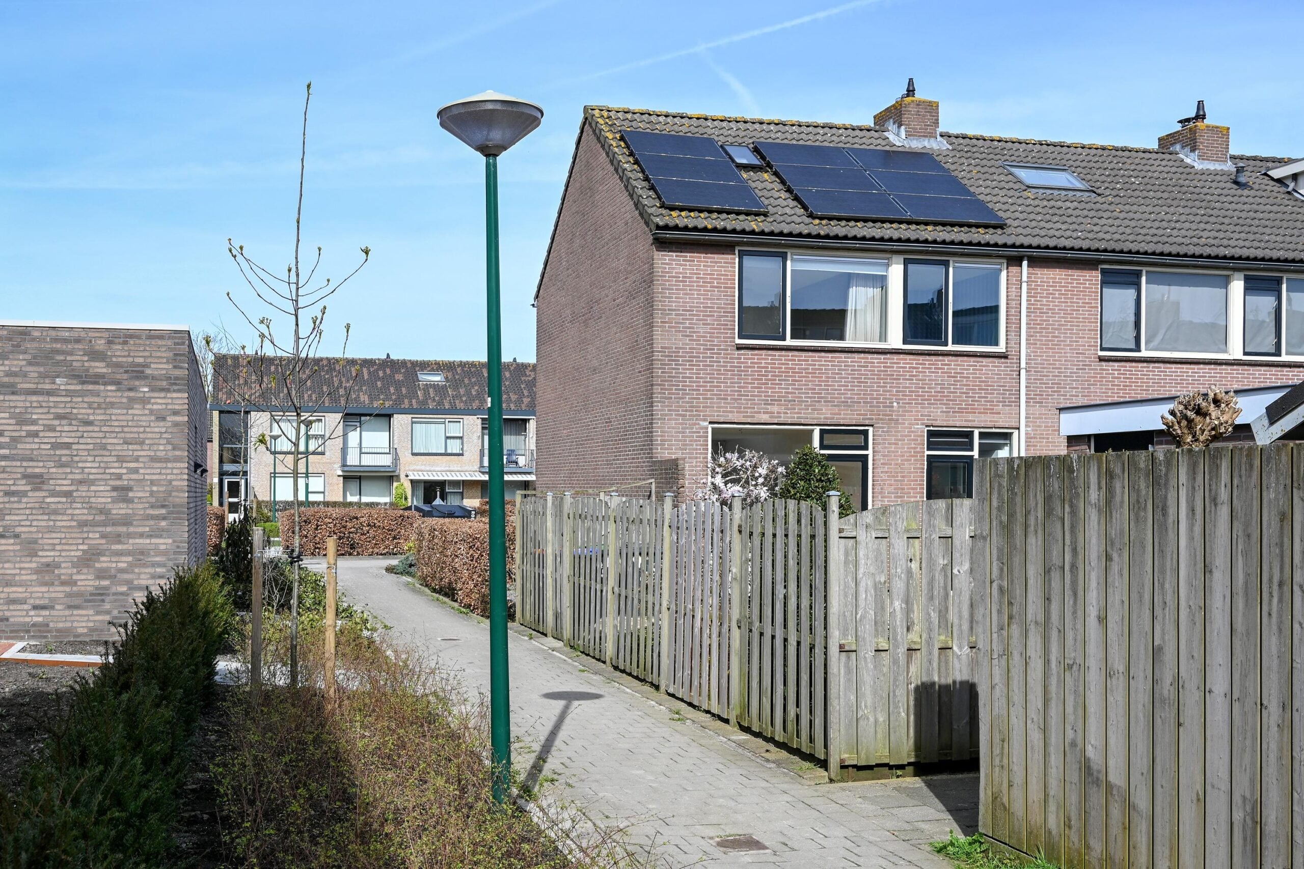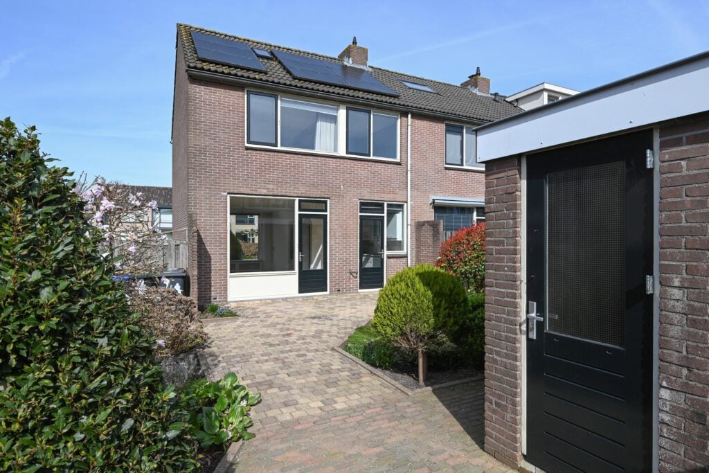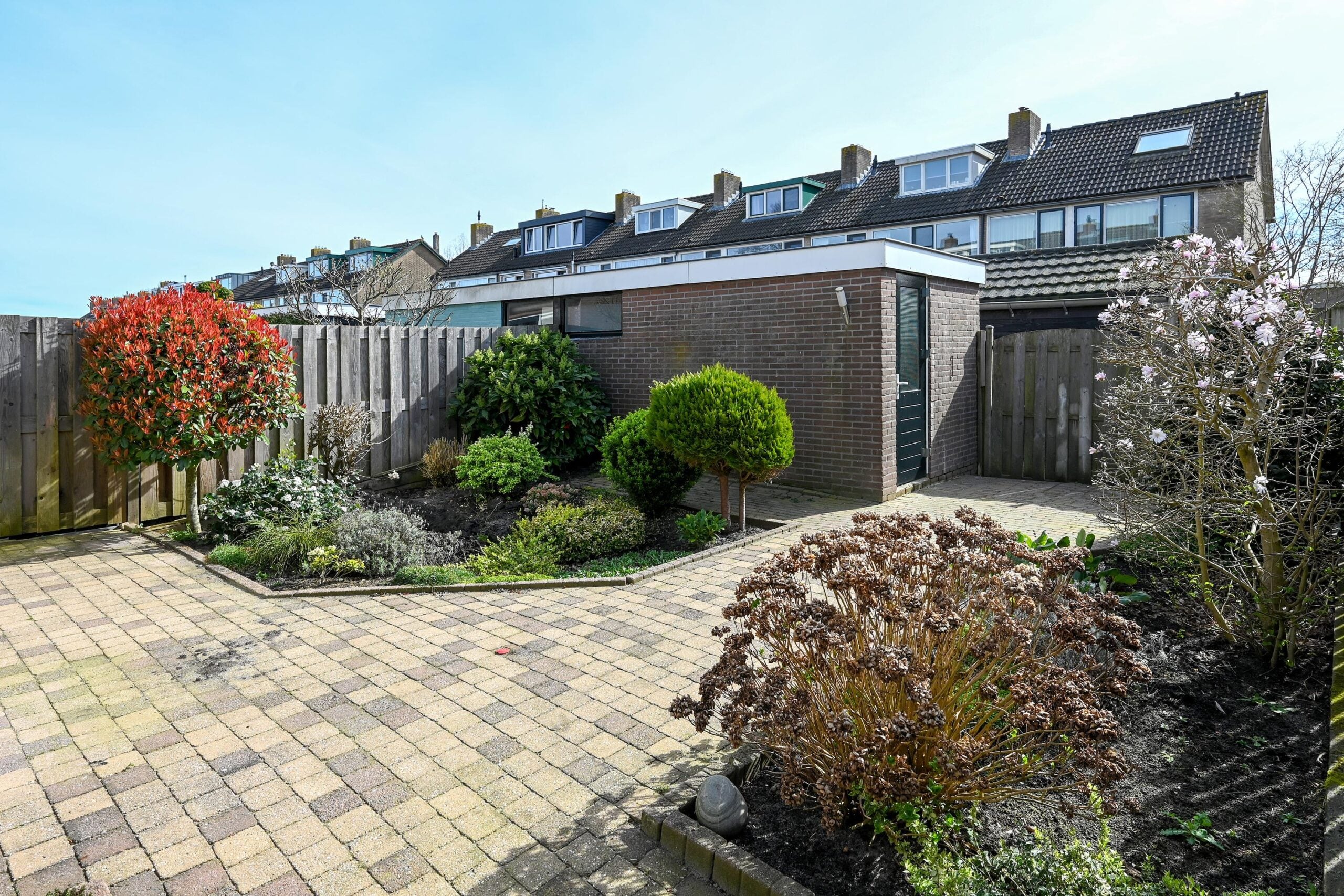 De woning beschikt over een fraai aangelegde, zonnige tuin op het zuiden met een ruime vrijstaande berging voorzien van elektra. Uiteraard is er ook een handige achterom.