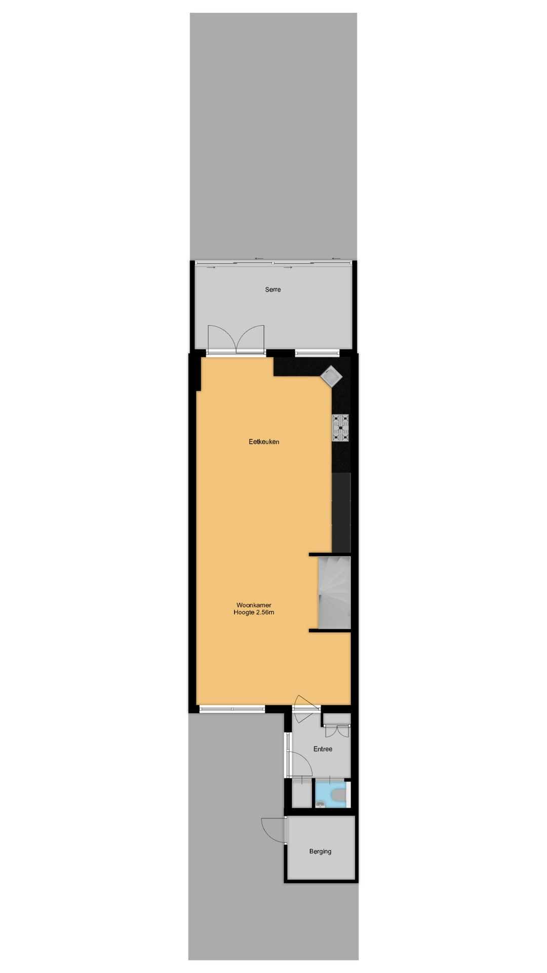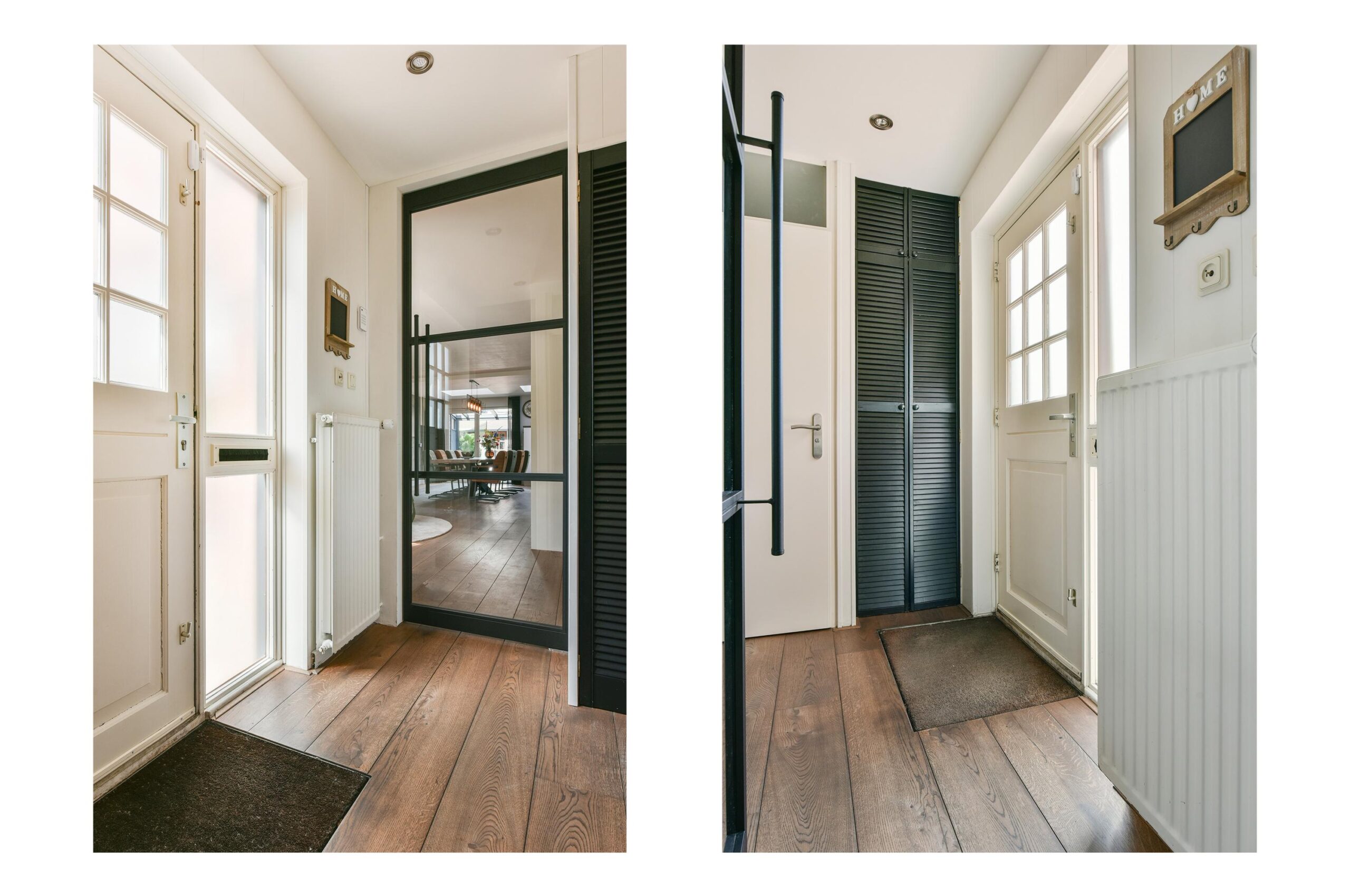 De hal – met inbouwkast – ontsluit met een moderne steellook taatsdeur de woonkamer. Aangrenzend is de berging welke een eigen toegangsdeur heeft.