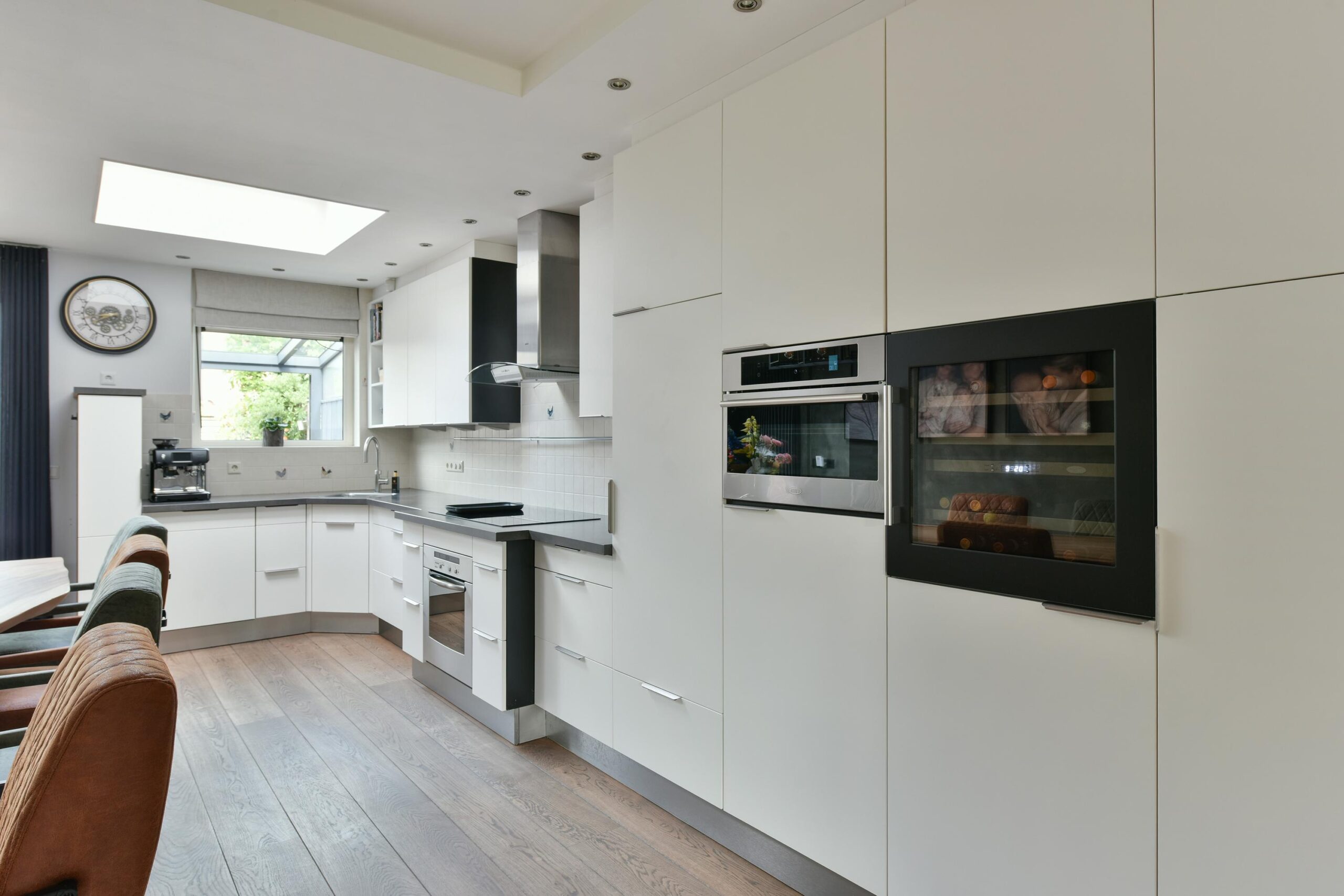 De keuken in L-opstelling is voorzien van alle moderne gemakken. Een heerlijke leefruimte!