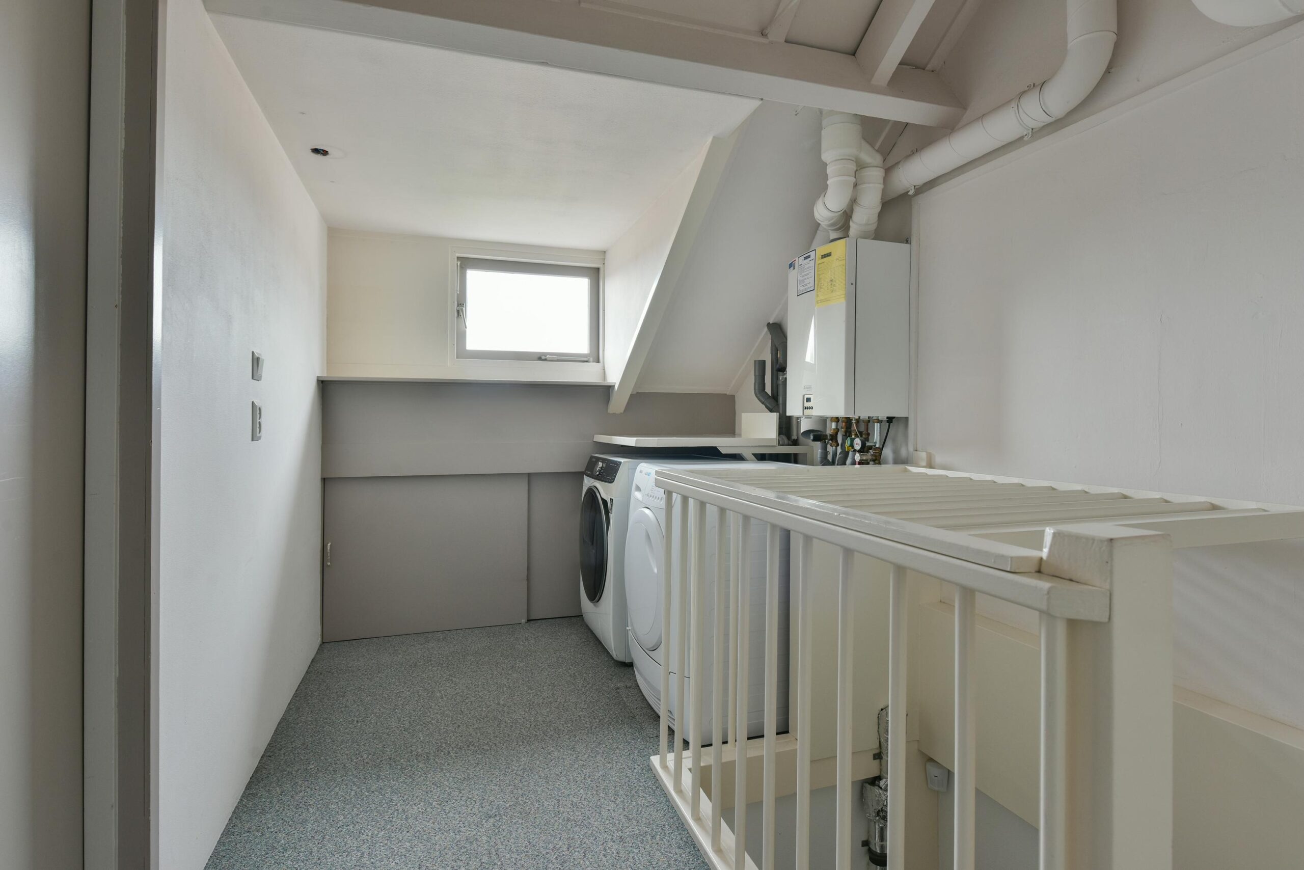 Op de overloop zijn de Cv-installatie en de aansluitingen voor de wasmachine en wasdroger geplaatst.