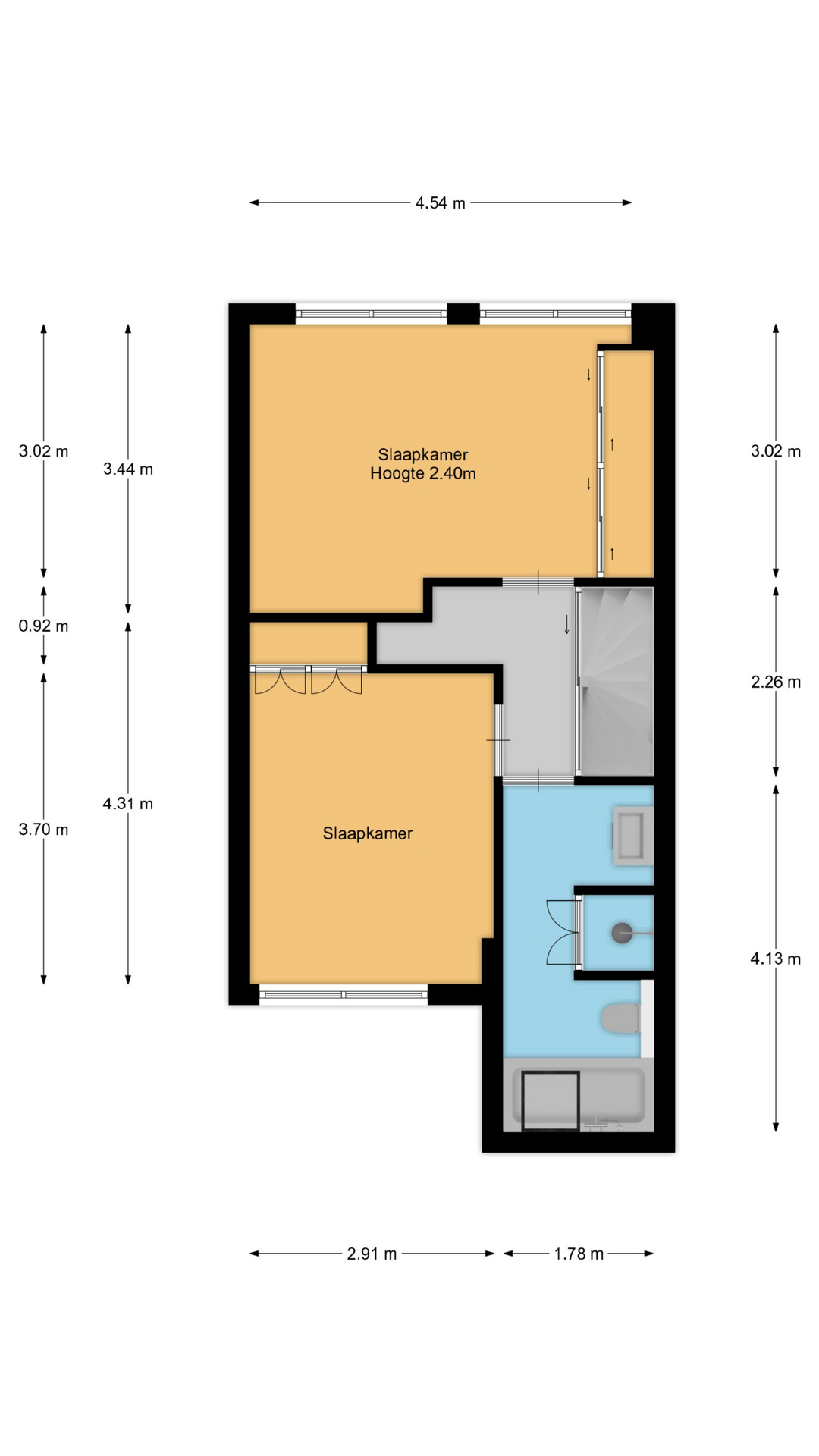 De tweede verdieping is met een vaste houten trap bereikbaar.
