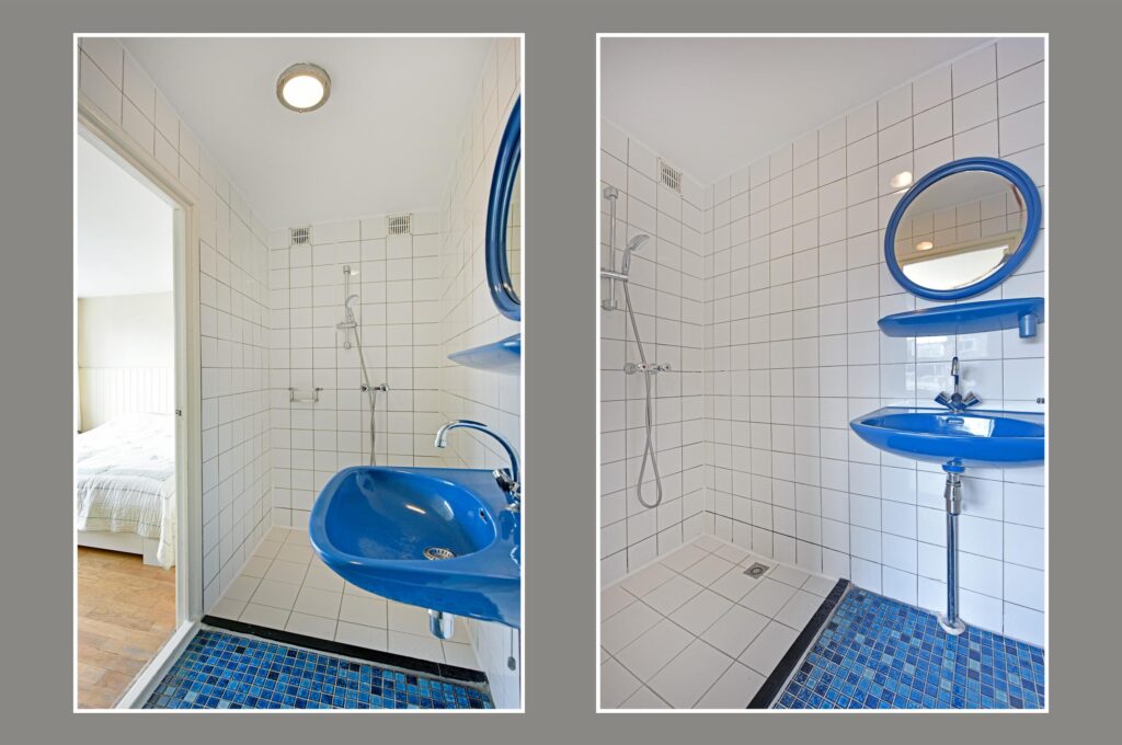 This floor has four bedrooms, two of which are equipped with practical built-in wardrobes. The bathroom features a walk-in shower and a fixed washbasin.