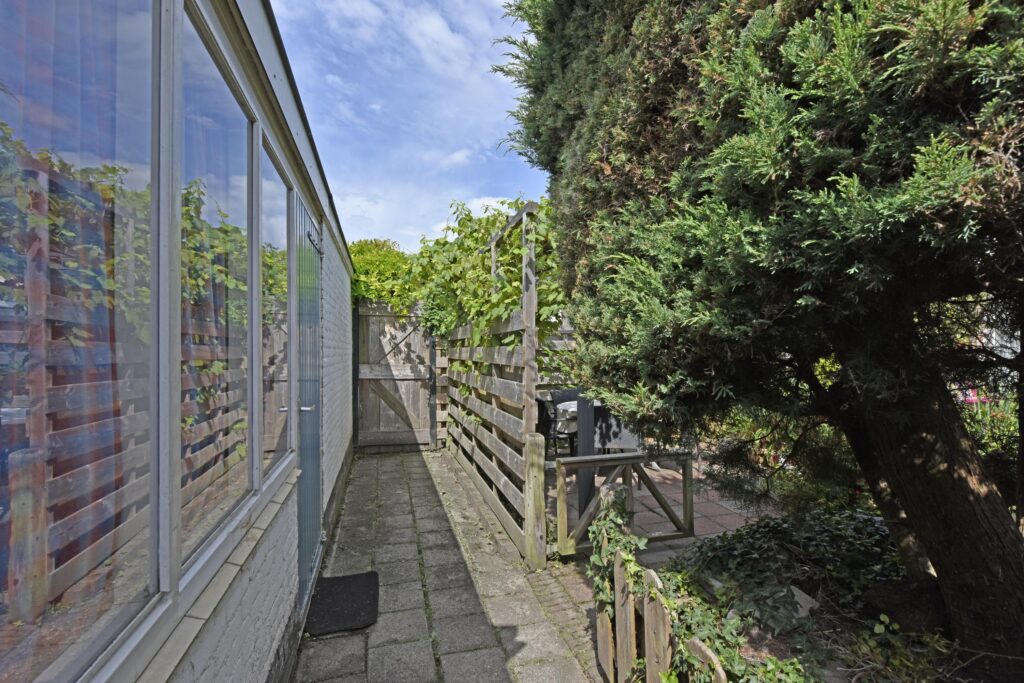 De groene wijk ademt rust en ruimte uit en de heerlijke beschutte zonnige tuin (Zuid-West) maakt het plaatje compleet. De voorzijde geeft uitzicht op vrijstaande bungalows met veel groen er omheen.