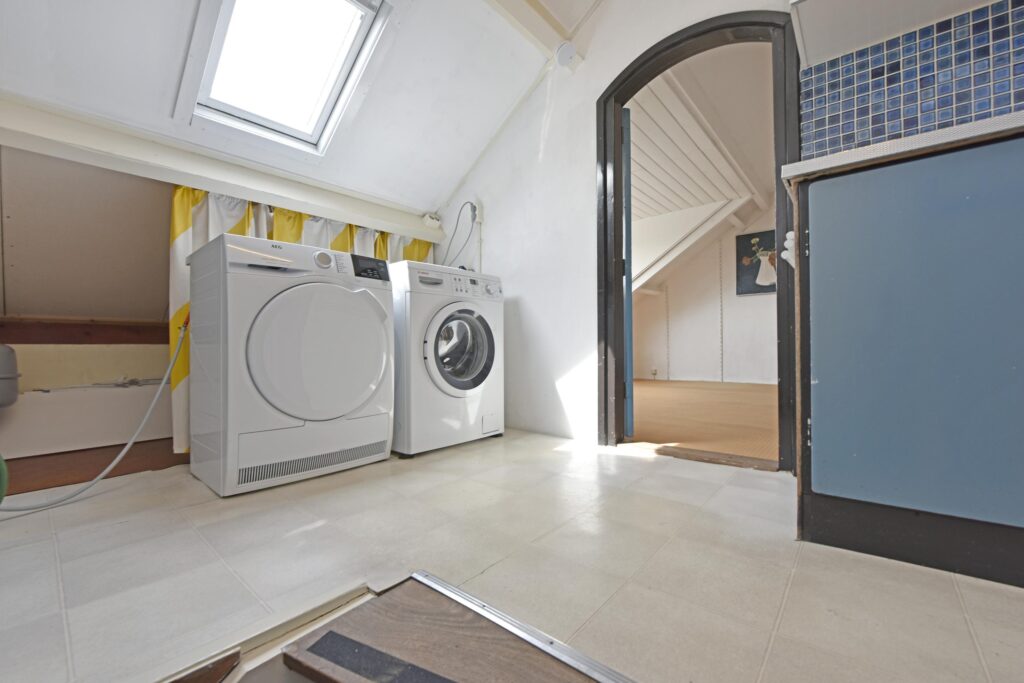 De overloop (daglicht aanwezig via dakvenster) heeft een extra keukenblok. Tevens is hier de opstelling voor de was-apparatuur aanwezig, en de opstelling van de CV Combiketel (bouwjaar 2019).