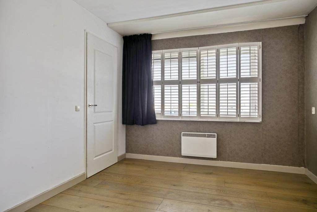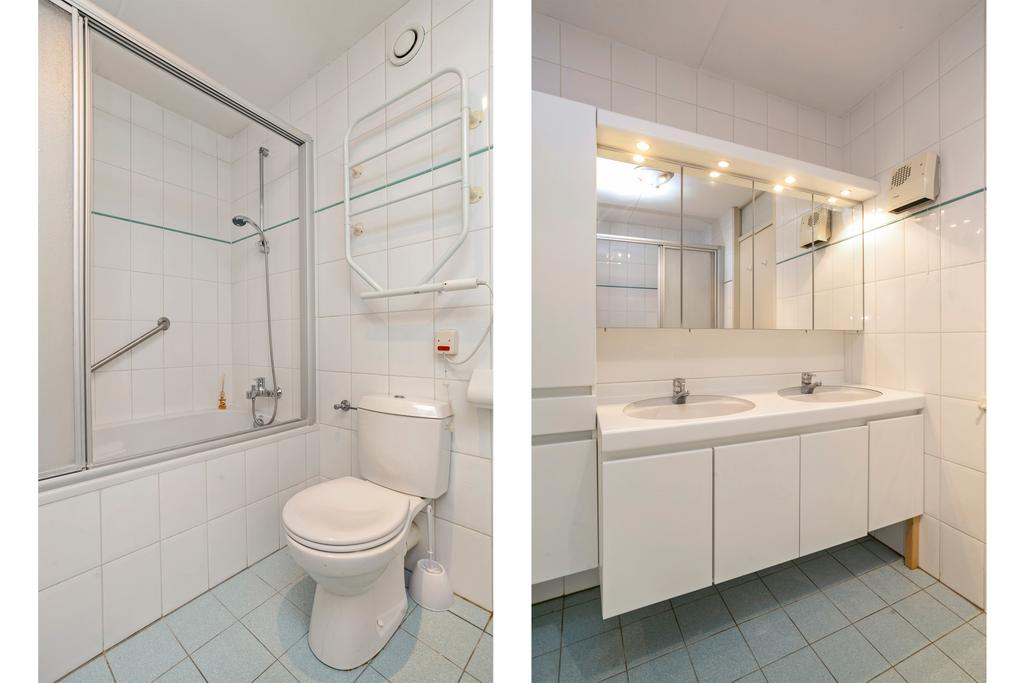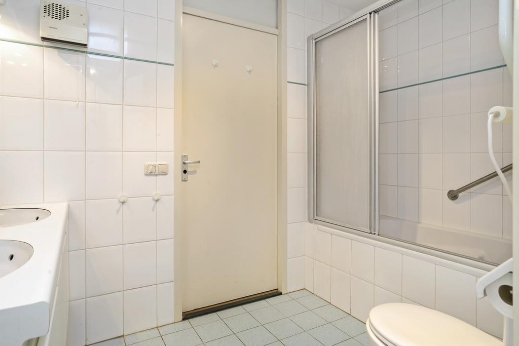 Vanuit de hal is de slaapkamer bereikbaar, deze heeft een doorgang naar de badkamer waarin een ligbad, toilet en wastafelmeubel met dubbele wastafel zijn gesitueerd.