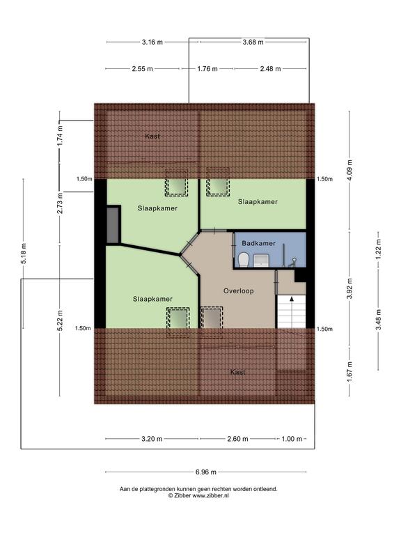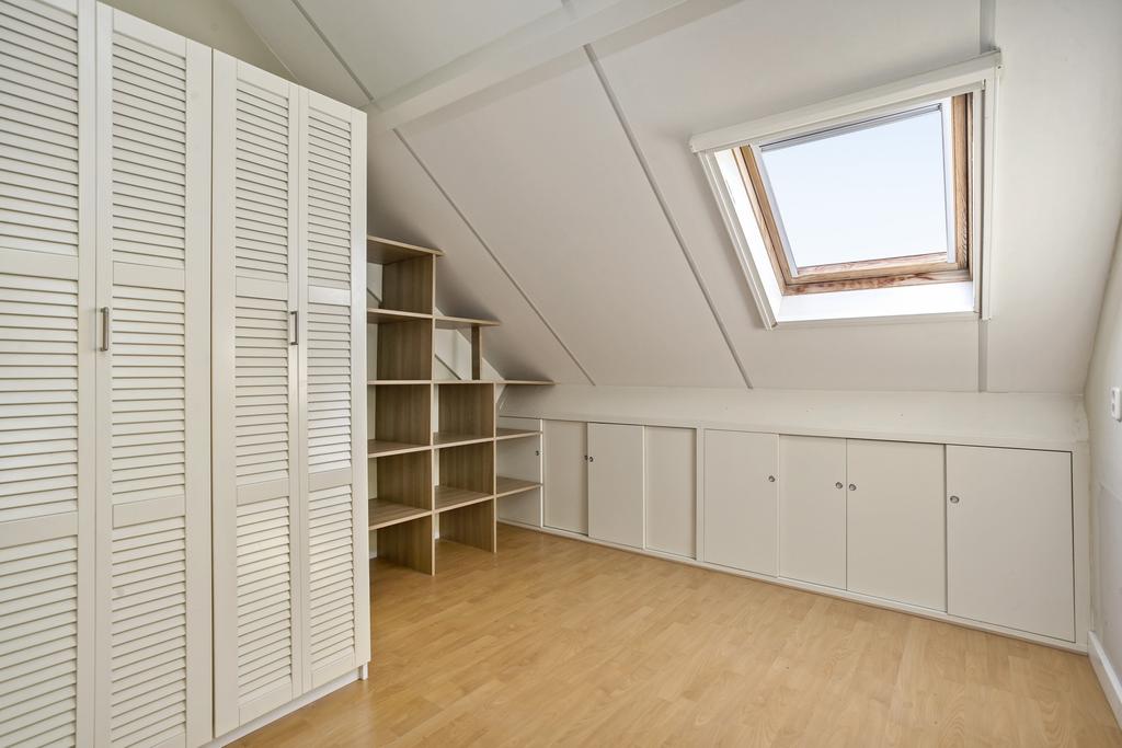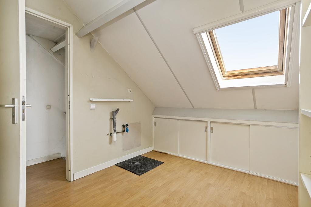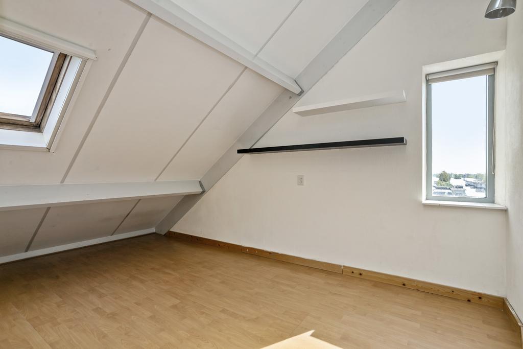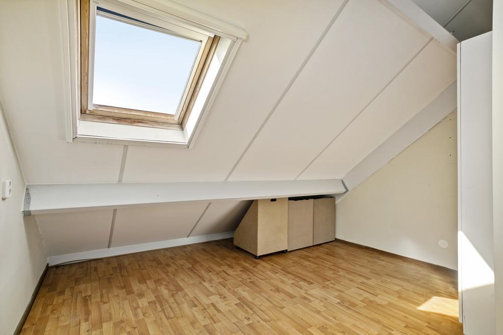 Ruime overloop met groot dakvenster, veel lage bergruimte, aansluiting voor wasmachine en volop ruimte voor een werkplek. De drie in grootte variërende slaapkamers zijn allen voorzien van een groot dakvenster en veel (vaste) kastruimte. De tweede badkamer is uitgerust met een toilet, wastafelmeubel en douche.