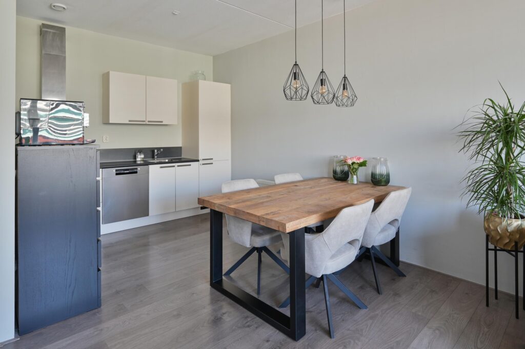 De ruime en lichte woonkamer met open keuken vormt het hart van het appartement. De keuken is voorzien van diverse apparatuur, waaronder een vaatwasser (2025), koelkast met ruim vriesvak en een 4-pits gaskookplaat met RVS afzuigkap.