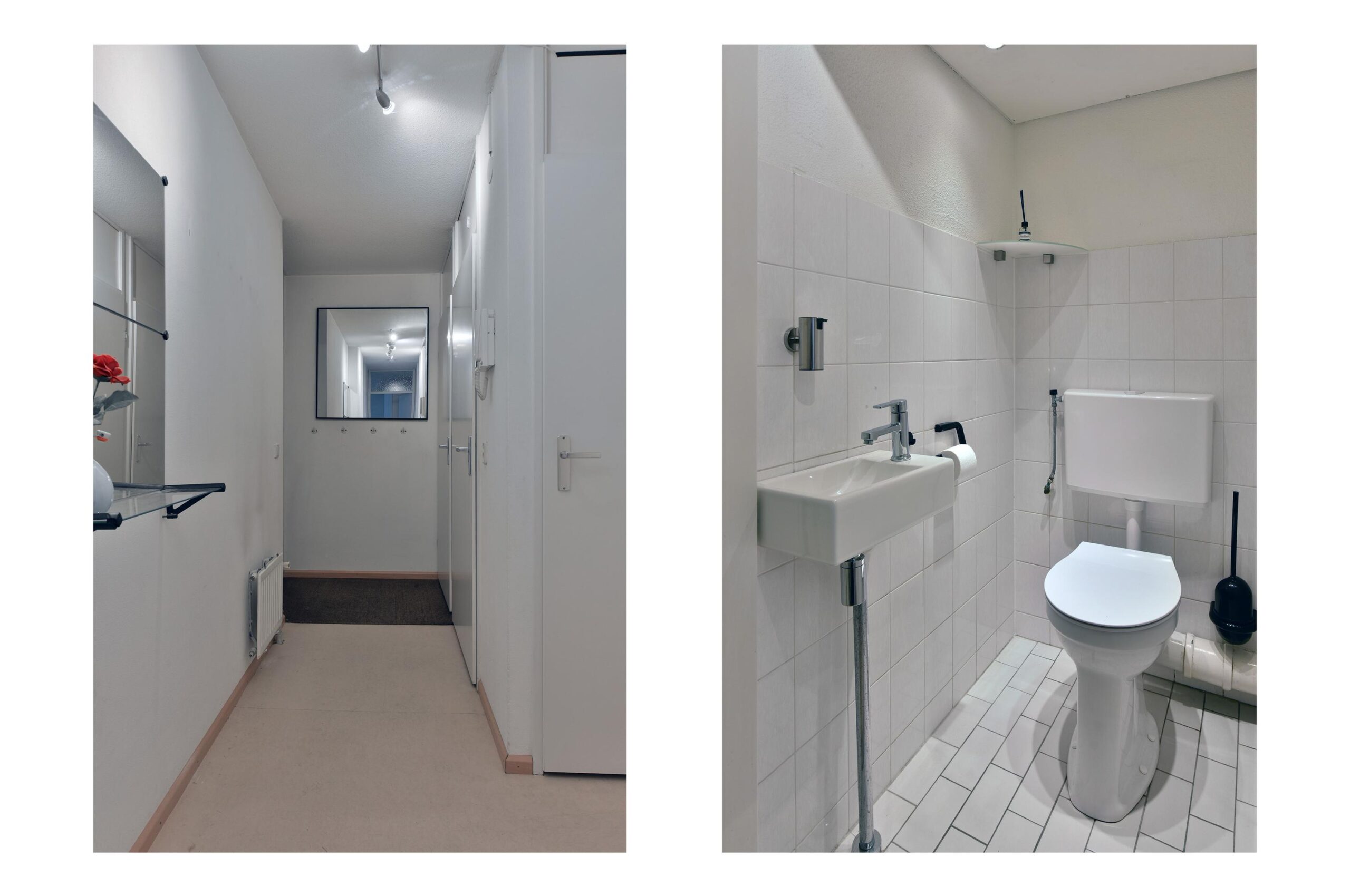 Via het trappenhuis of de lift bereikt u de tweede etage. Bij binnenkomst treft u de entreehal met toegang tot de meterkast, een separate toiletruimte en een handige werkkast met opstelling voor de cv-ketel. De badkamer is uitgerust met een inloopdouche, een wastafelmeubel, een aansluiting voor de wasmachine en enkele kasten.