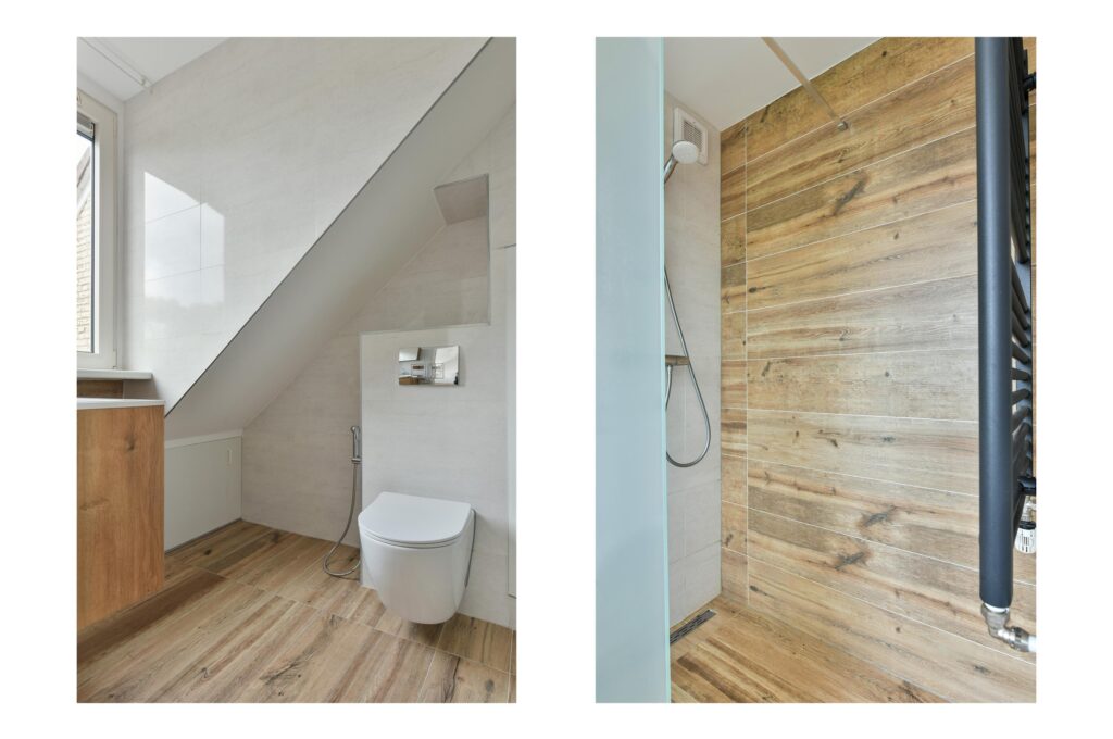 De ruime zolderkamer is stijlvol afgewerkt met gestucte wanden en inbouwverlichting. Hier is in 2021 een extra badkamer geplaatst met inloopdouche, extra toilet, wastafelmeubel en een elektrische verwarming met thermostaat. Deze verdieping is ideaal voor oudere kinderen of voor gasten/familie die langer verblijven.