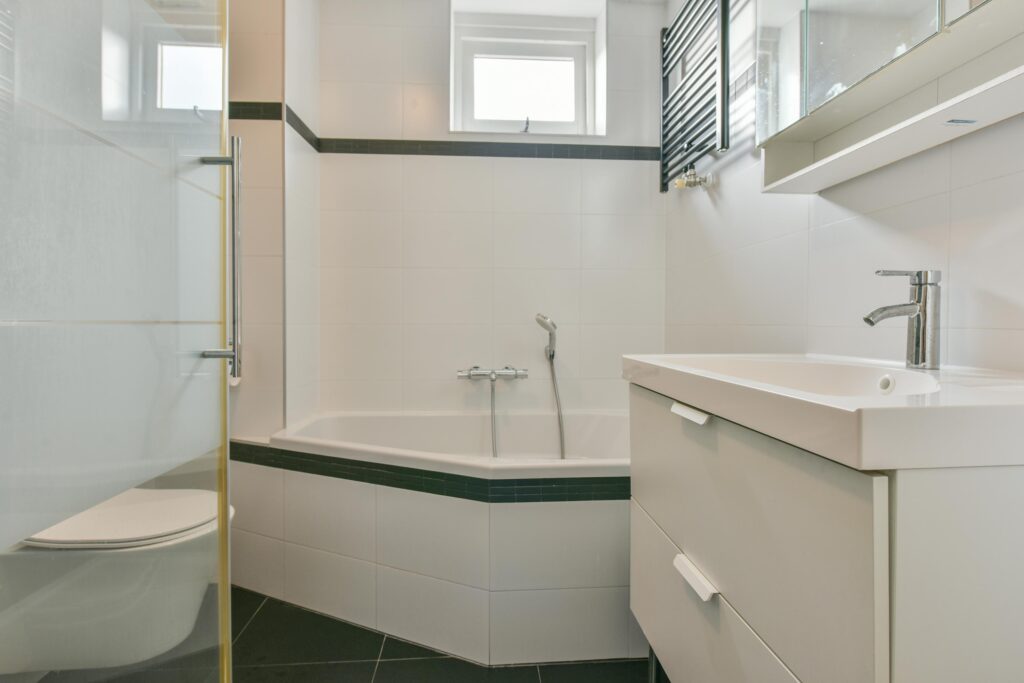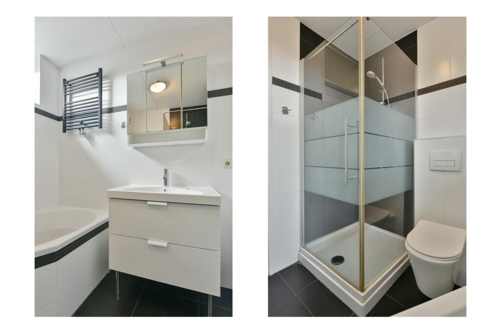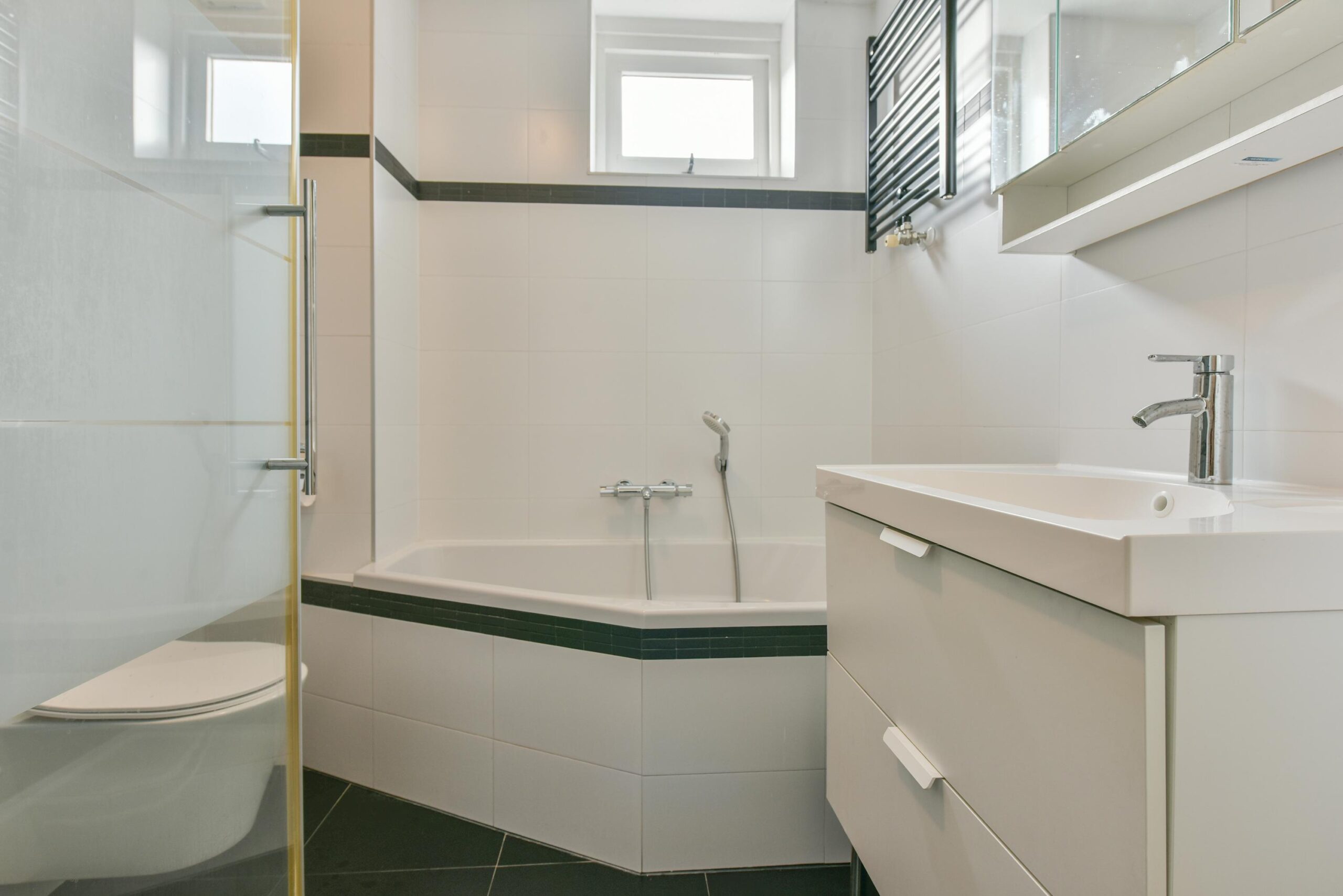 Overloop met toegang tot drie ruime slaapkamers, allemaal voorzien van PVC-ramen (2021) en laminaatvloeren. Er is een moderne en volledig betegelde badkamer (2017) met inloopdouche, ligbad, wastafelmeubel, tweede toilet en designradiator.
