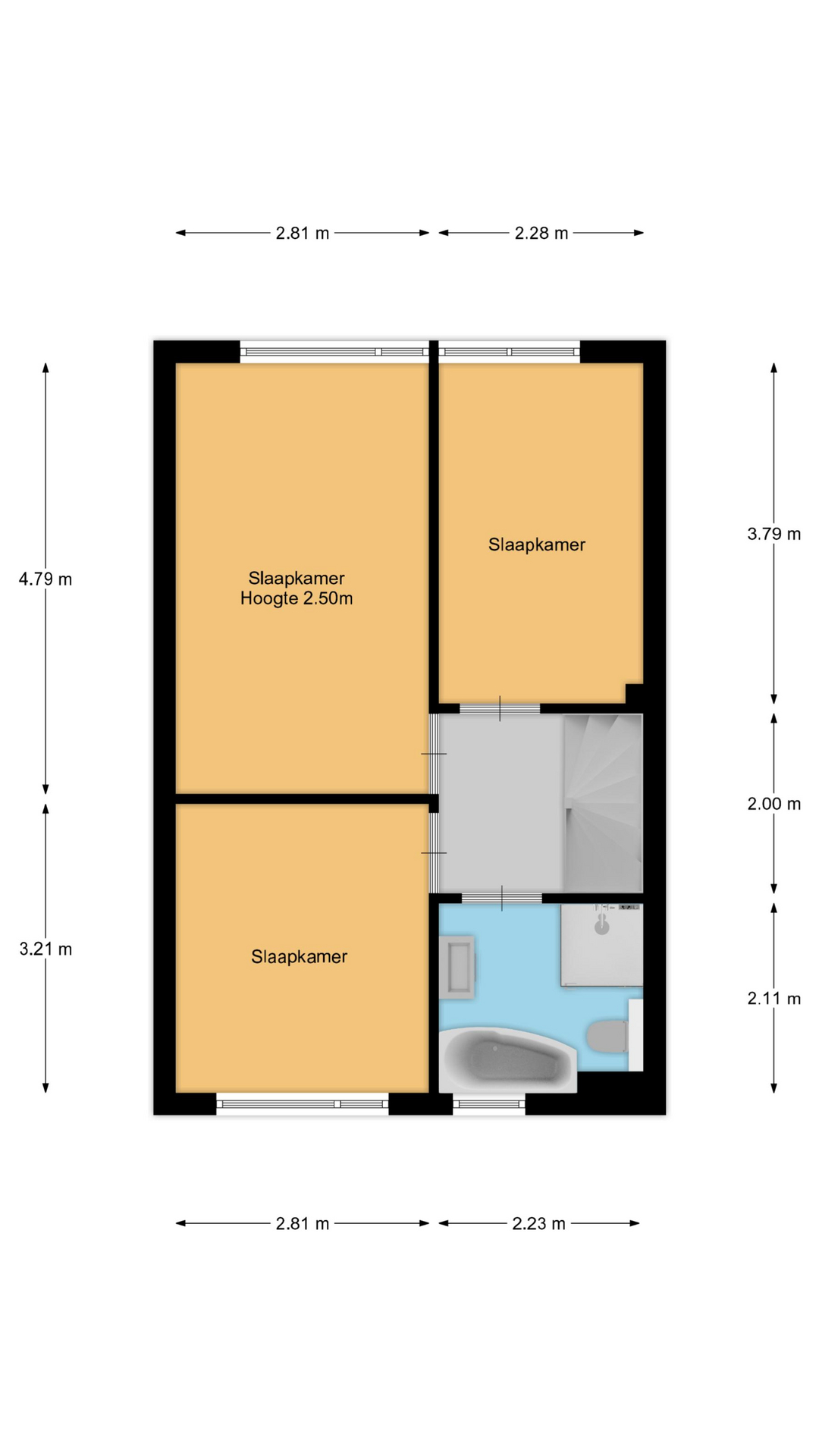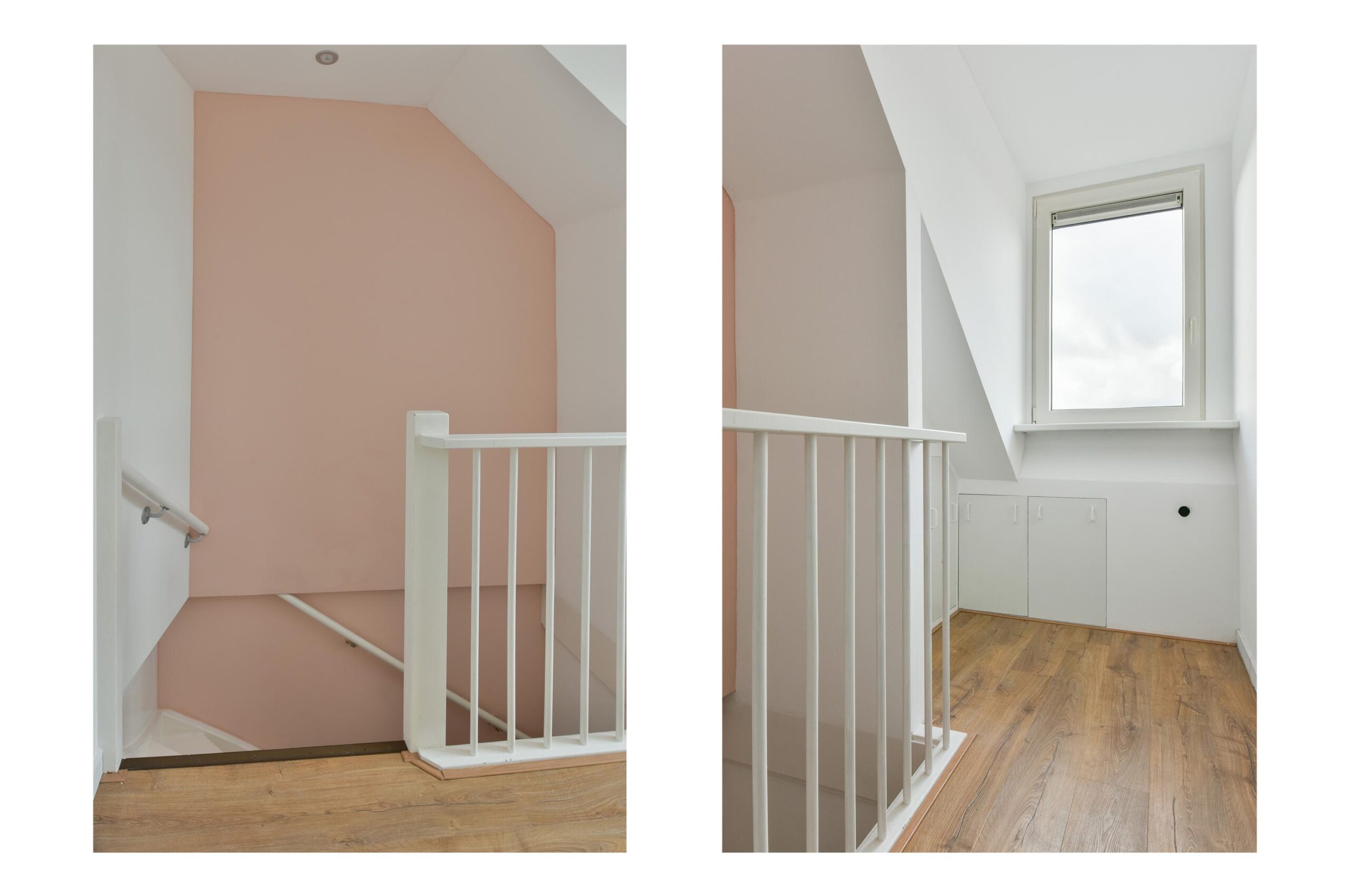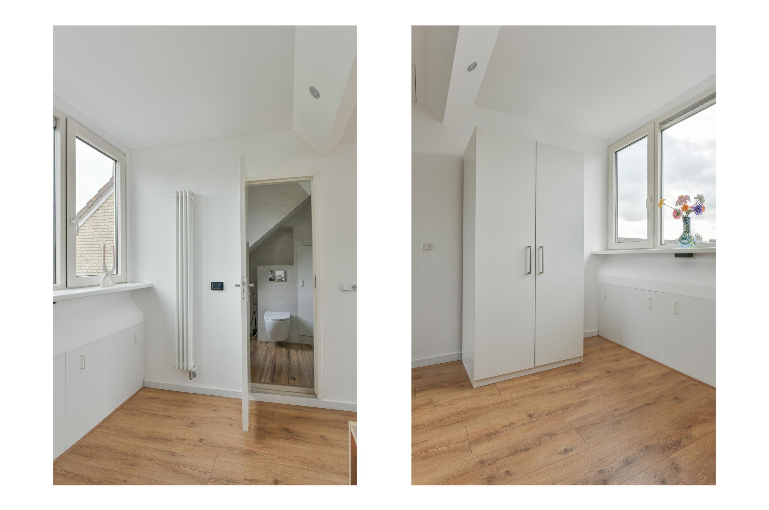 Deze verdieping heeft twee grote PVC dakkapellen (met elektrische rolluiken) over vrijwel de volledige breedte van de woning. De overloop (met toegang tot de vliering via een vlizotrap) krijgt veel daglicht en is geschikt als opbergruimte of studeerhoek.