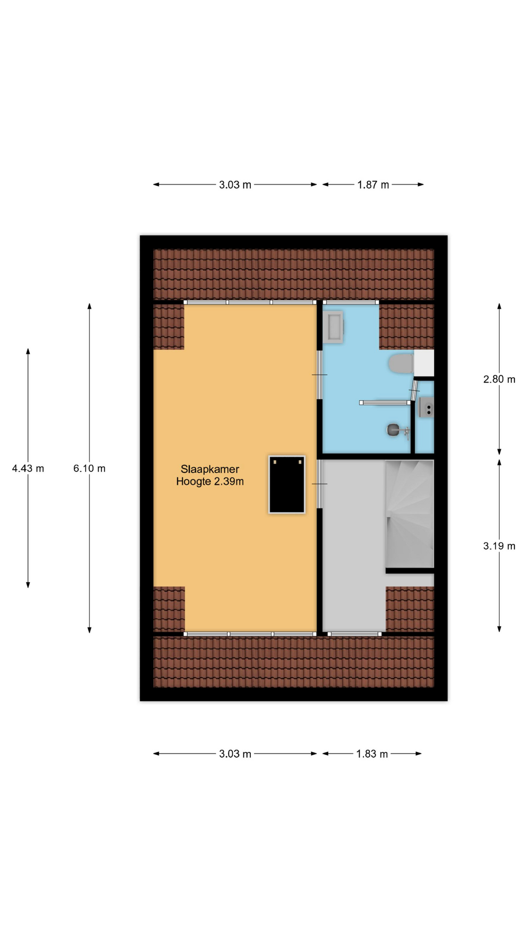 This floor features two large PVC dormer windows (with electric shutters) spanning nearly the full width of the house. The landing area (which provides access to the attic via loft ladder) also benefits from ample natural light and is suitable for storage or can be used as a study area.