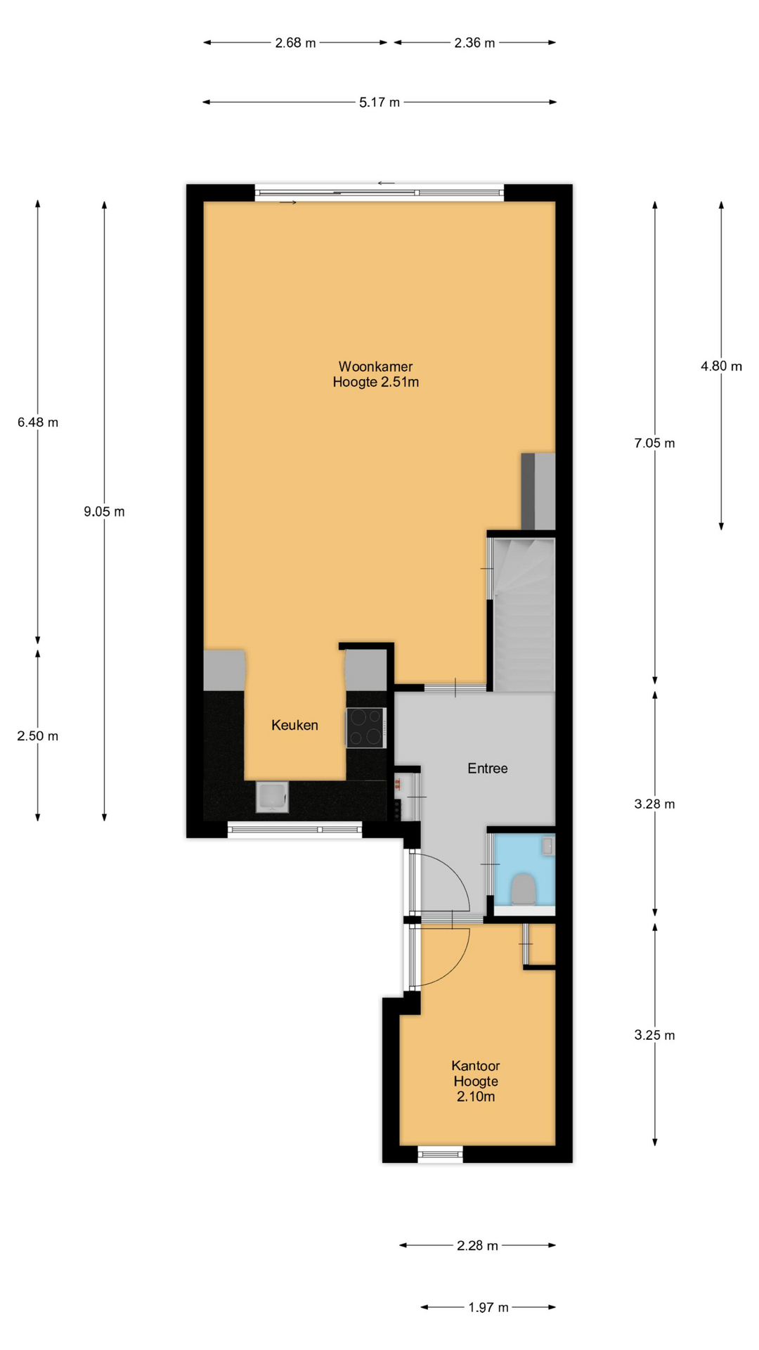 Binnenkomst via een uitnodigende hal met toegang tot een multifunctionele, geïsoleerde voorkamer met daglicht – perfect als kantoor of atelier. De lichte woonkamer met open haard en trapkast geeft toegang tot de diepe, besloten tuin aan het water – ideaal voor rustige en gezellige momenten buiten.