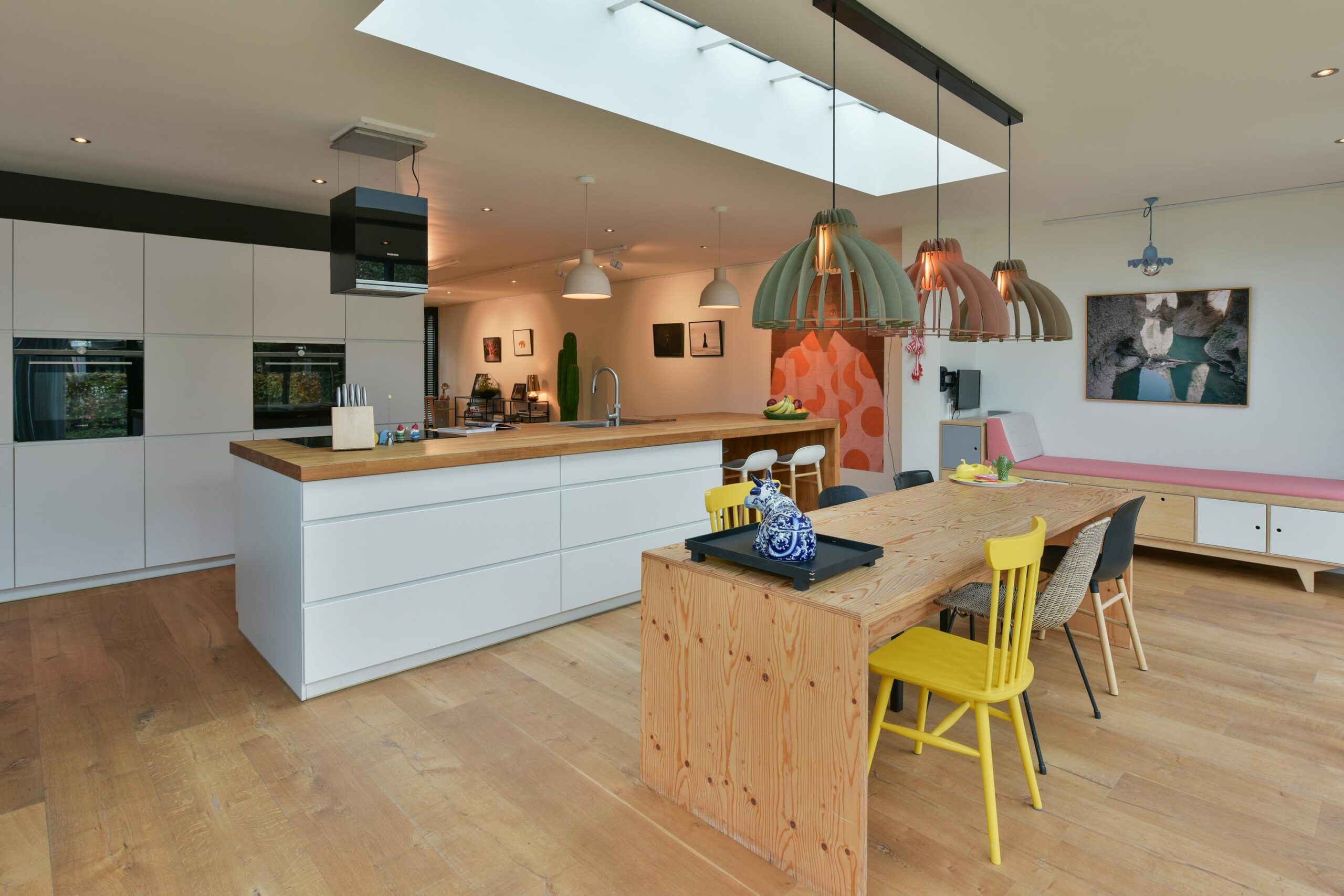 Zodra u binnenstapt, voelt u het: deze woning ademt rust, kwaliteit en authenticiteit. De royale u-vormige living, voorzien van houten vloer met vloerverwarming, kent tal van indelingsmogelijkheden. De grote woonkeuken met lichtstraat en openslaande deuren naar de tuin vormt het warme hart van het huis. Koken, ontspannen, werken en samenzijn vloeien hier moeiteloos in elkaar over.