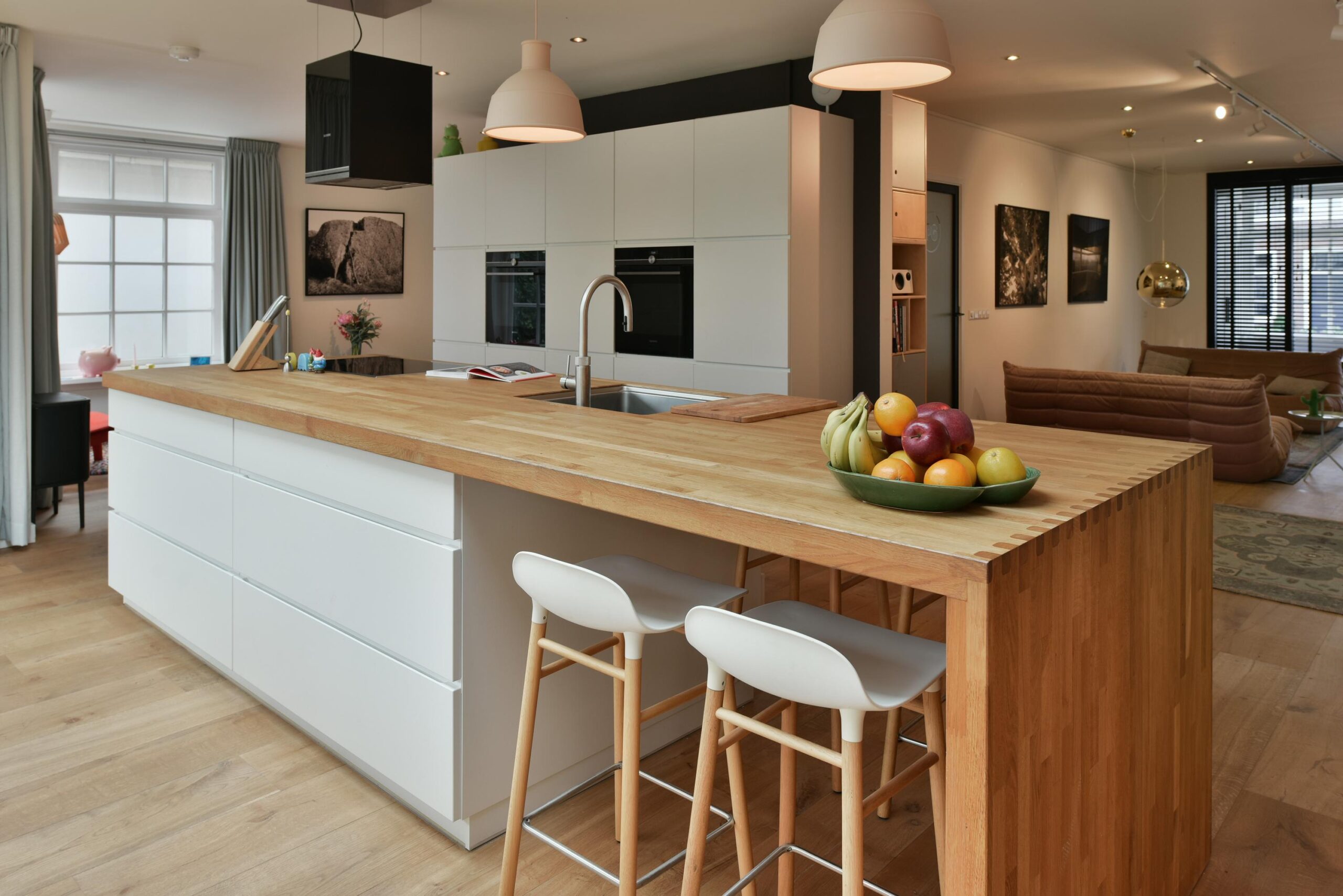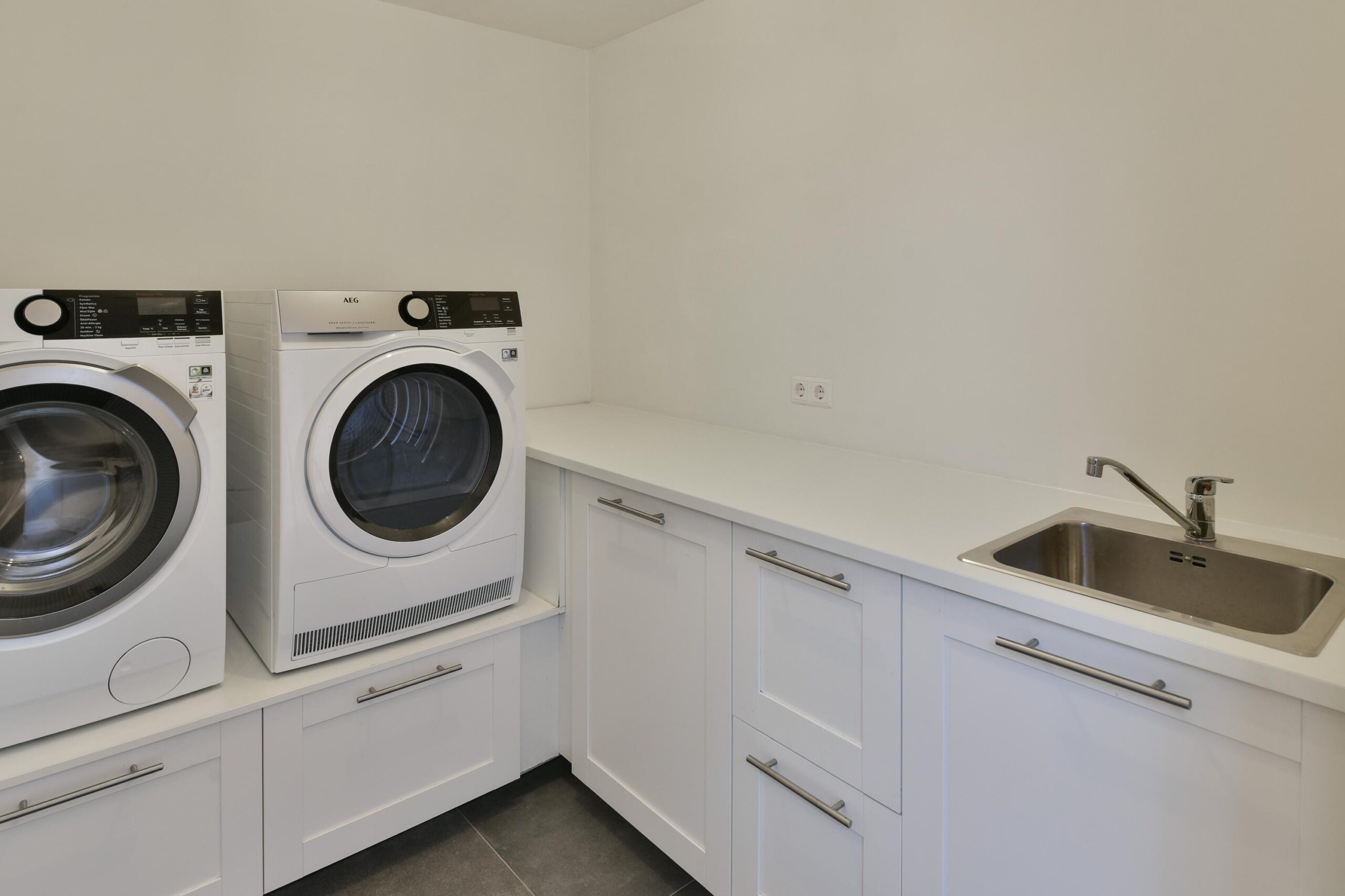 De keuken is luxe uitgevoerd met een kook-/spoeleiland, inductiekookplaat met design afzuigkap, Quooker en een complete set hoogwaardige inbouwapparatuur waaronder: oven, stoomoven, vaatwasser, koelkast, vriezer, inductiekookplaat met design afzuigkap en Quooker.