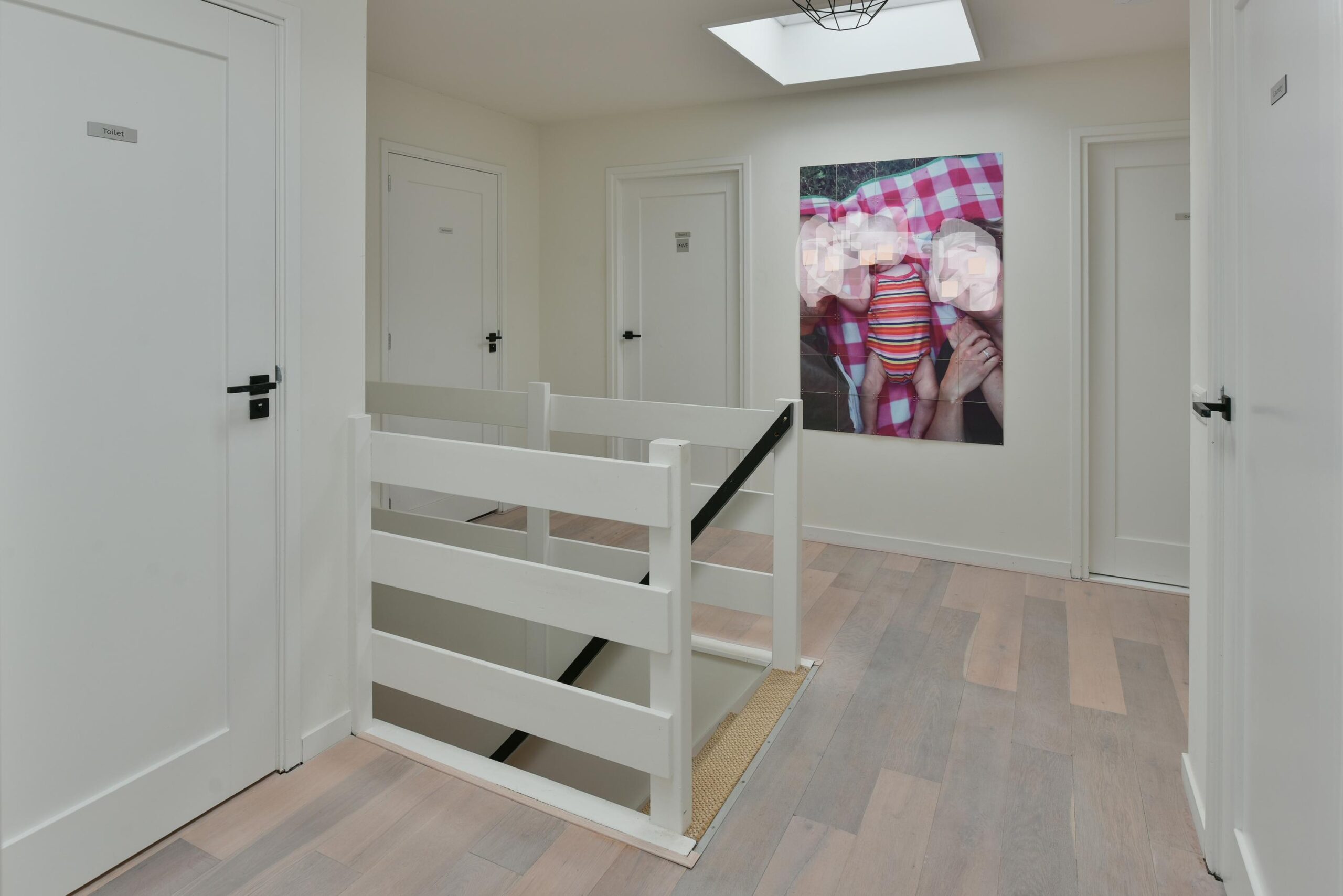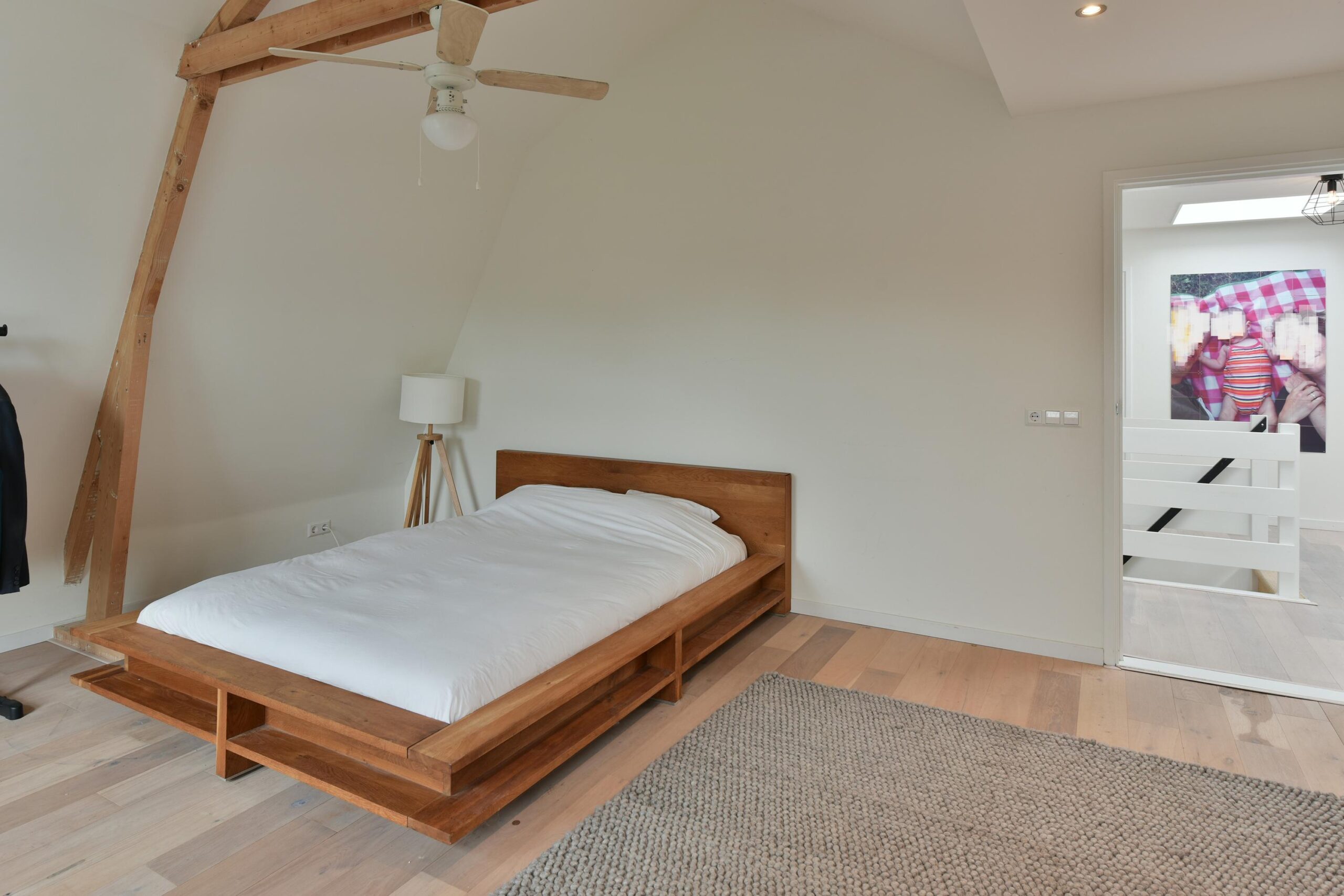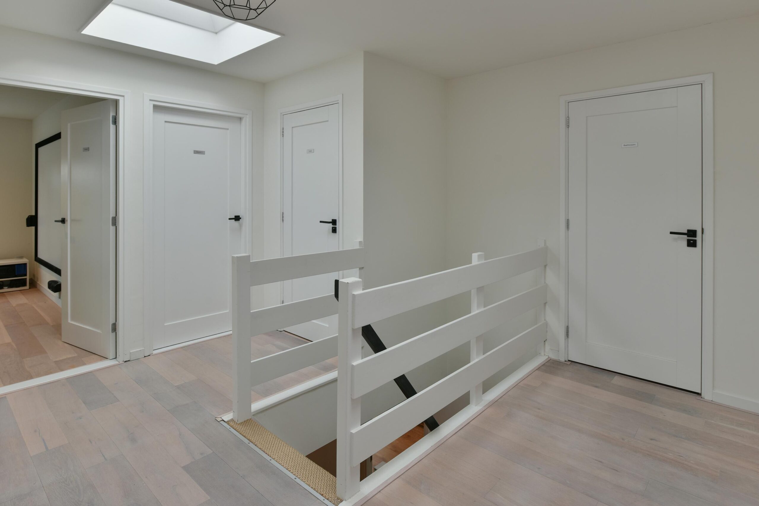 De lichte overloop met twee grote daklichten geeft toegang tot maar liefst vier zeer ruime slaapkamers. Daarnaast vindt u hier een separaat toilet, een praktische was-/droogruimte met maatwerk kasten en spoelbak, een moderne badkamer met dakkapel. Deze is compleet uitgerust met ligbad, dubbele wastafel, inloopdouche met regen- en handdouche en handdoekradiator.