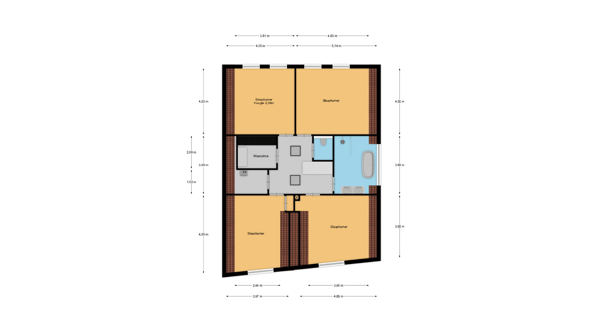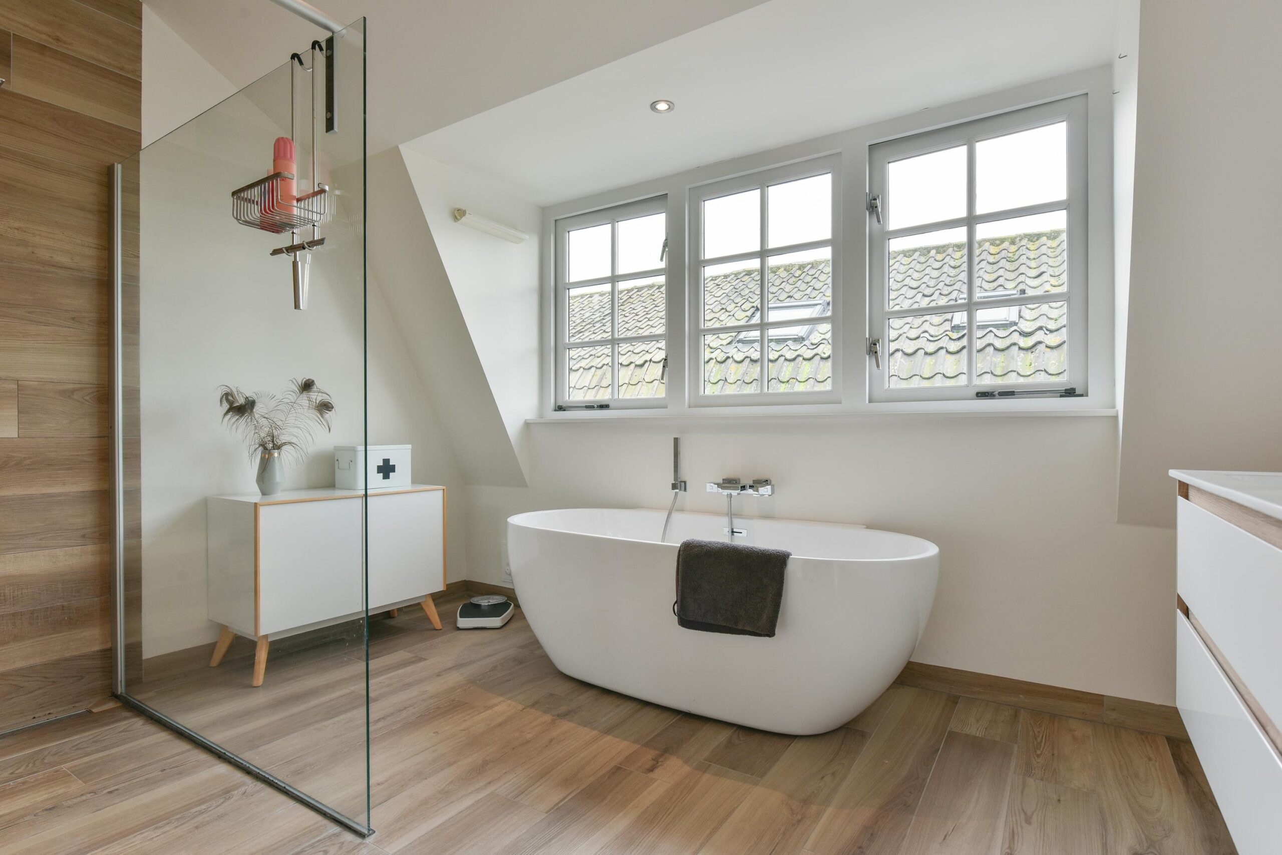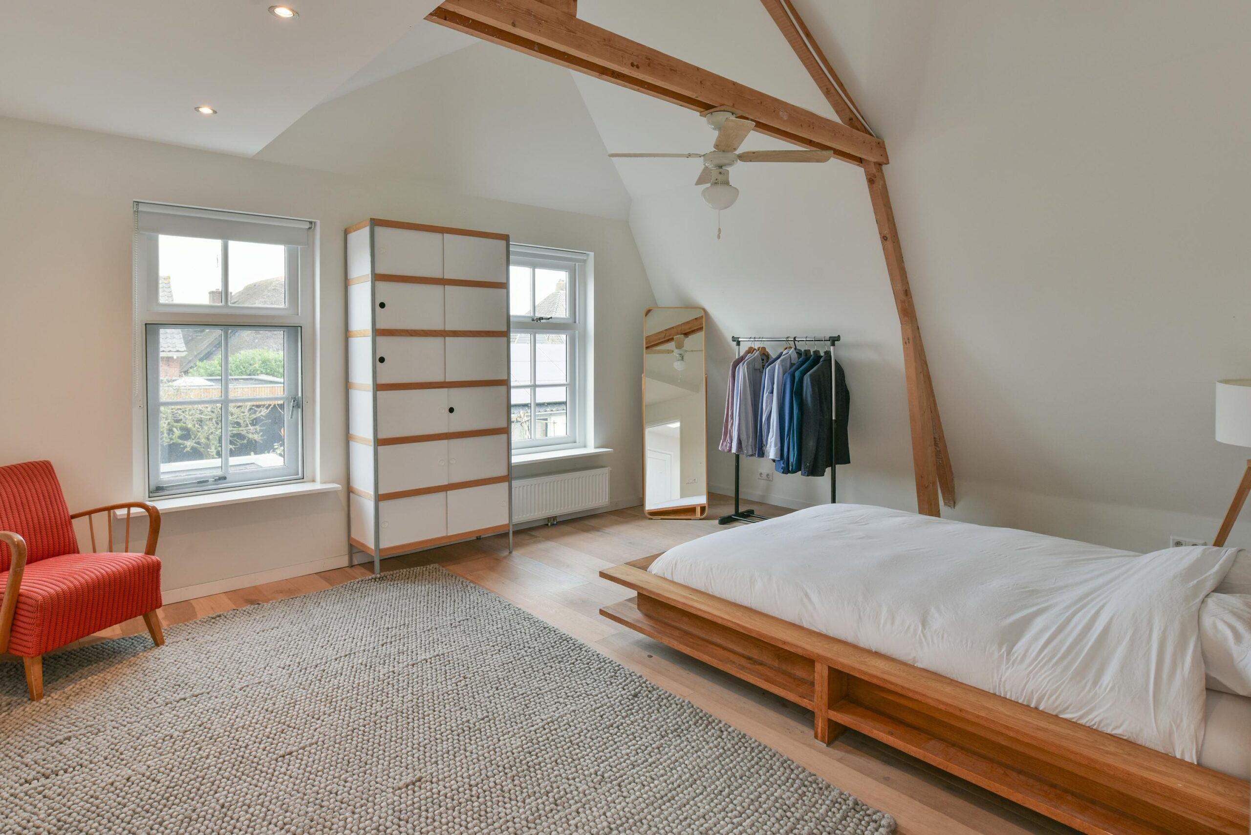 De lichte overloop met twee grote daklichten geeft toegang tot maar liefst vier zeer ruime slaapkamers. Daarnaast vindt u hier een separaat toilet, een praktische was-/droogruimte met maatwerk kasten en spoelbak, een moderne badkamer met dakkapel. Deze is compleet uitgerust met ligbad, dubbele wastafel, inloopdouche met regen- en handdouche en handdoekradiator.