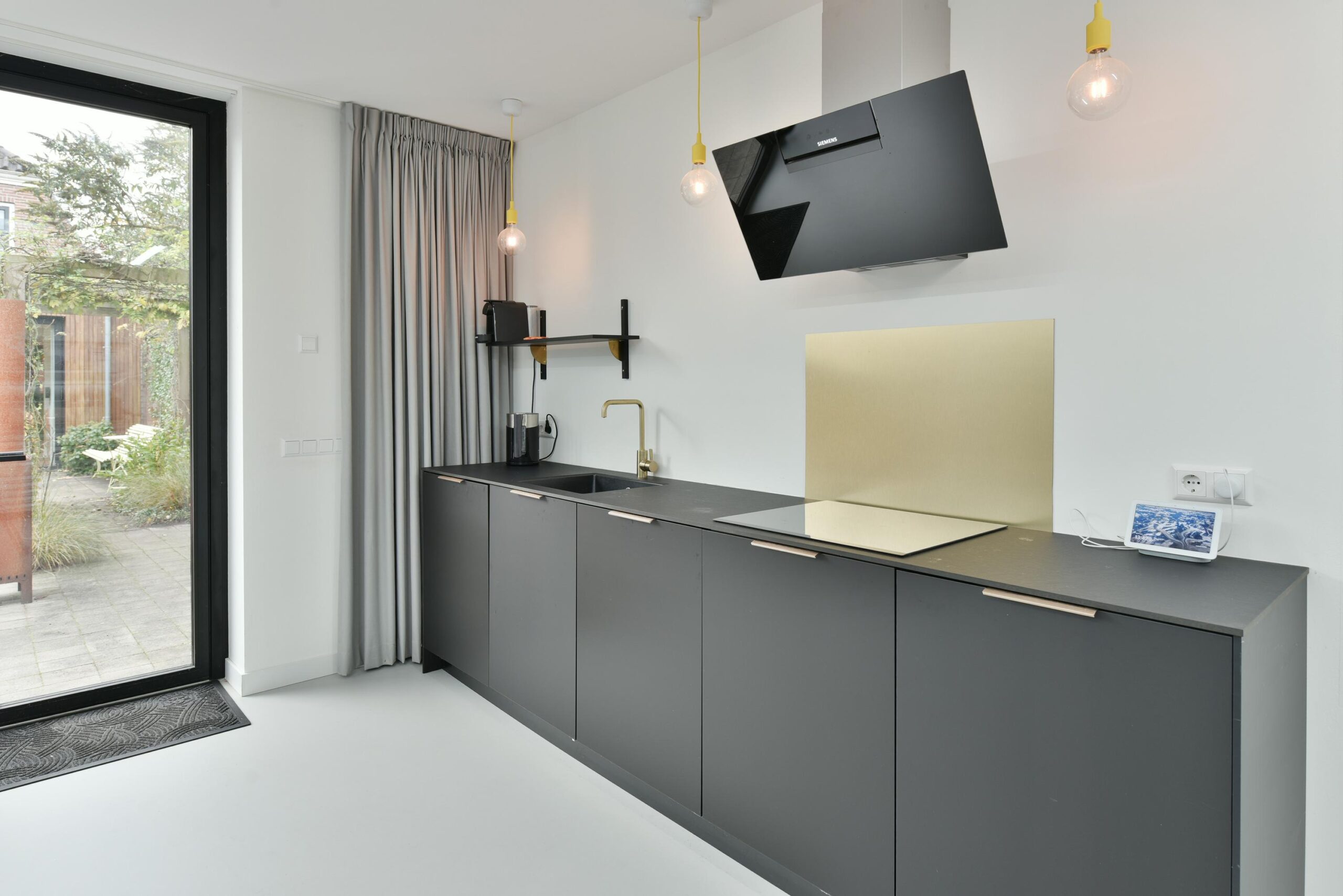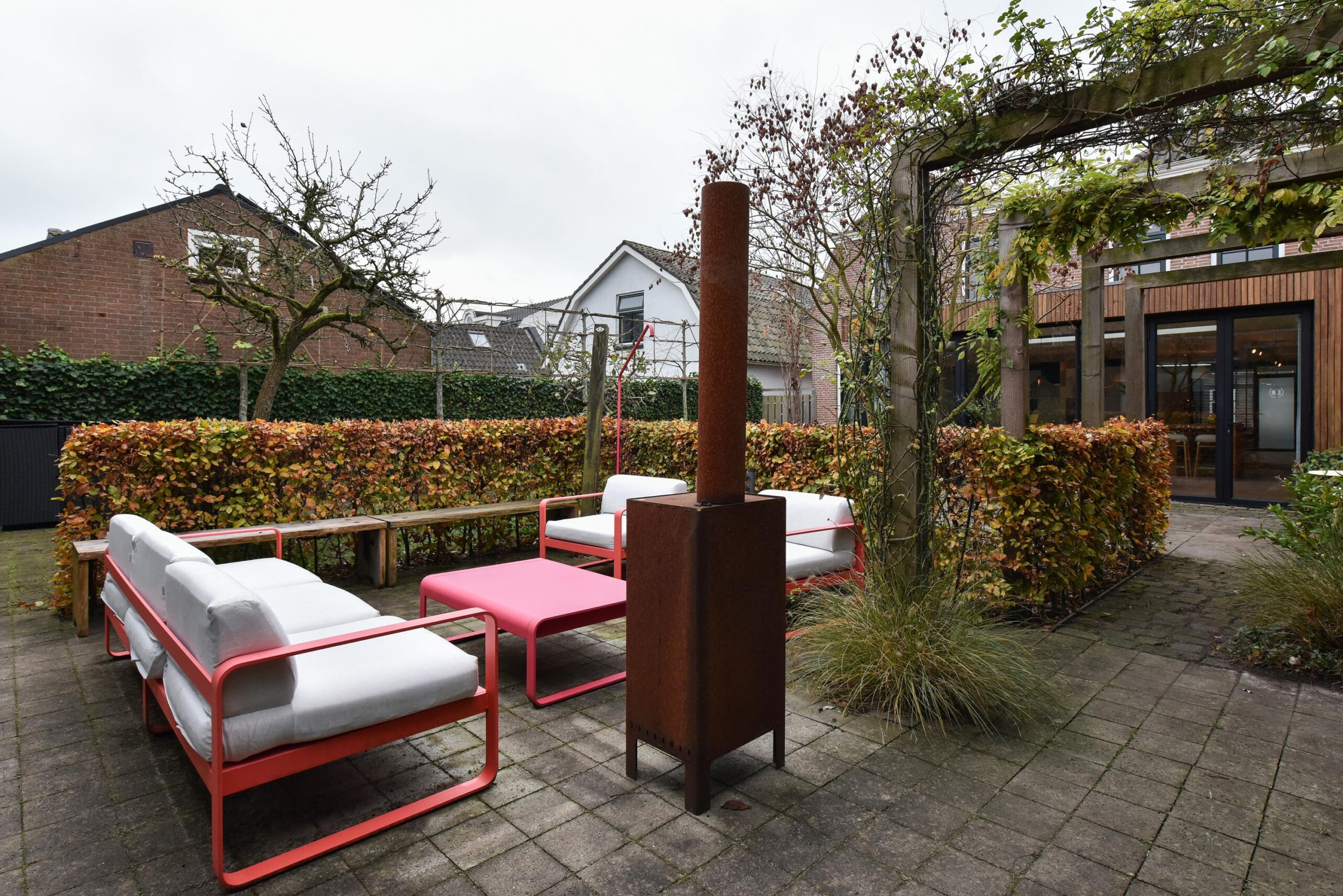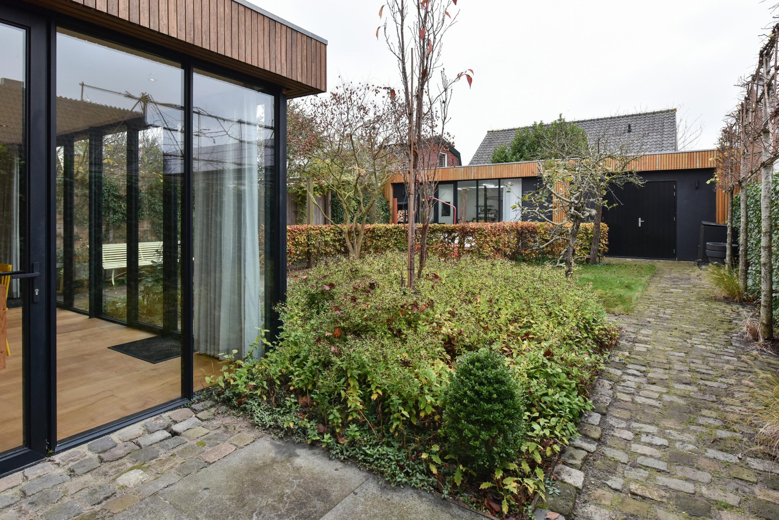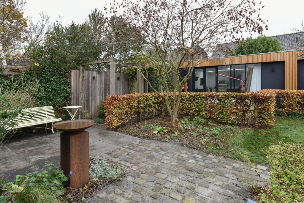Achter in de tuin staat een schitterend modern bijgebouw, perfect als studio, atelier, kantoor of mantelzorgwoning. De studio heeft een gietvloer met vloerverwarming, compleet uitgeruste keuken met koelkast, inductiekookplaat met afzuigkap en vaatwasser. Nette badkamer voorzien van inloopdouche, toilet en vaste wastafel en een hoge nok met brede glazen pui voor een fantastische lichtinval. Openslaande deuren verbinden de ruimte direct met de tuin.