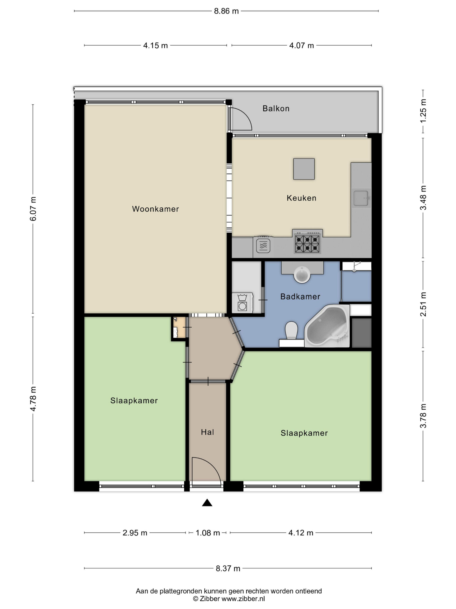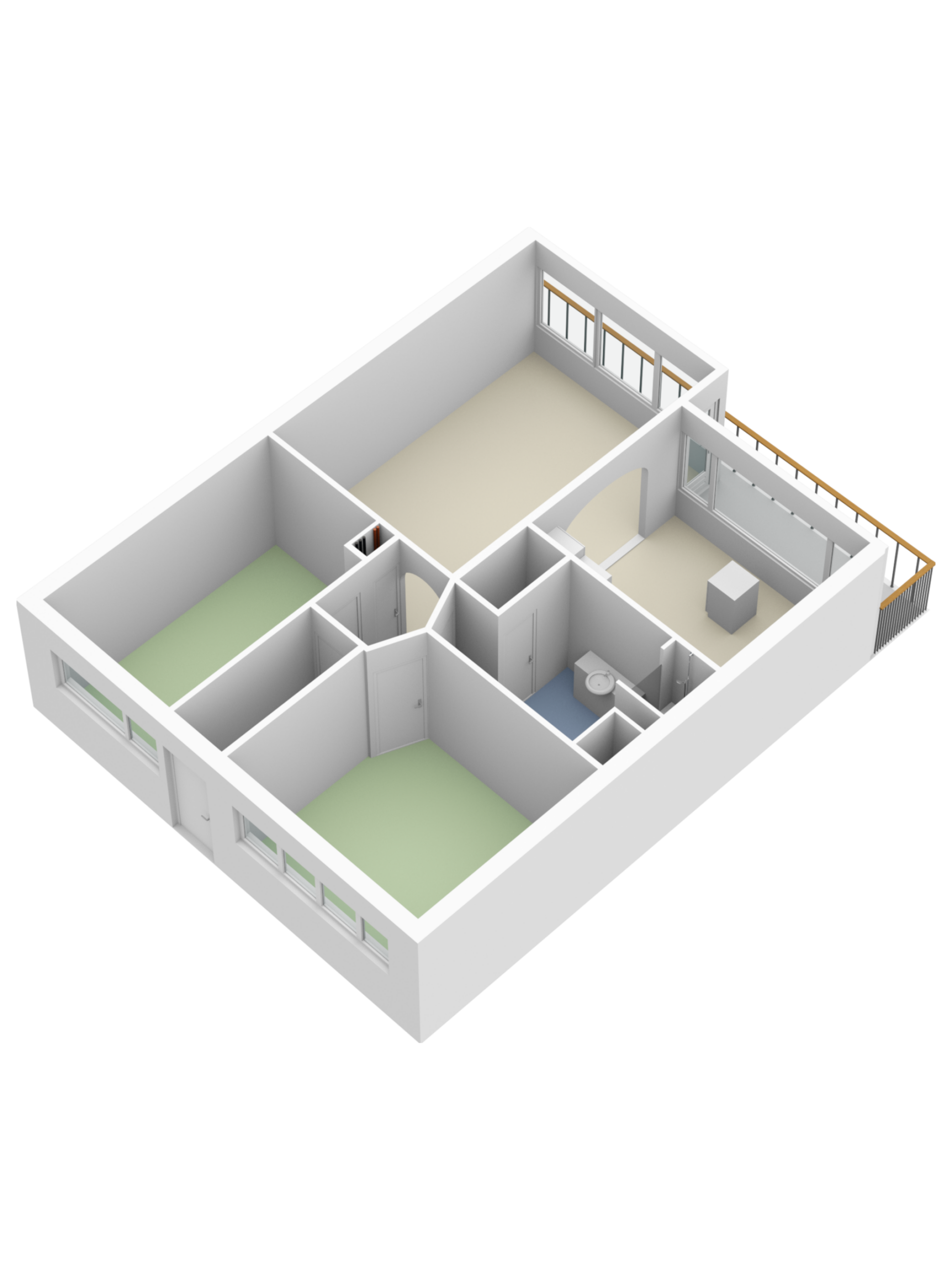 Er zijn twee ruime slaapkamers van respectievelijk ca. 16 m² en 14 m², deze zijn gelegen aan de galerijzijde. Van de laatste slaapkamer is om redenen geen foto maar een animatie toegevoegd.