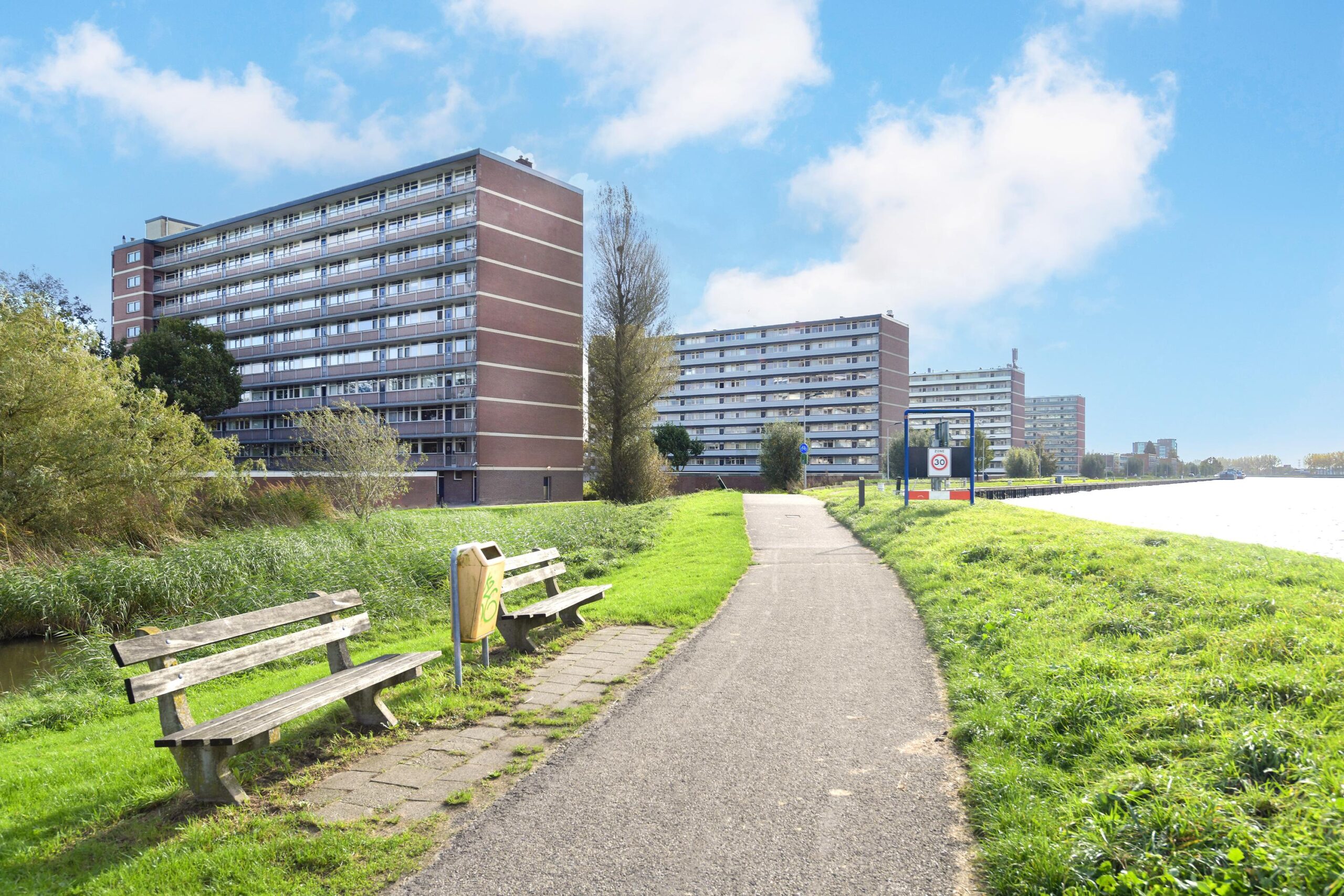 Zeer fraai gelegen 3-kamer appartement op de 9e verdieping met schitterend uitzicht op het Amsterdam Rijnkanaal.